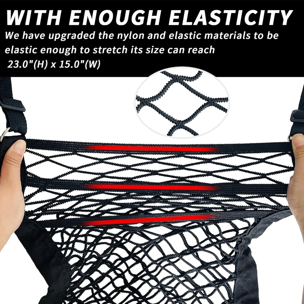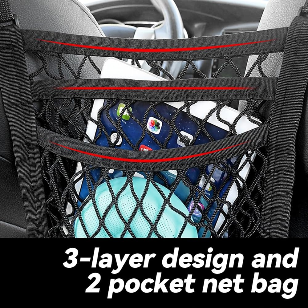 شبكة تخزين السيارة متعددة الوظائف: هذا المنظم الشبكي المصنوع من النايلون يعزز تخزين السيارة، وهو مثالي لتأمين حقائب اليد والمحافظ، وكحاجز للحيوانات الأليفة والأطفال.