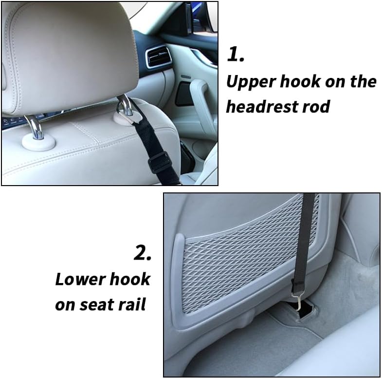 سهولة التركيب: في الجزء العلوي، ما عليك سوى تثبيت رافعات مسند الرأس، وفي الأسفل، فقط قم بربط الحافة الصلبة لأي شيء أسفل المقعد، وفي المنتصف، قم بتثبيته في صندوق مسند الذراع بحبل.