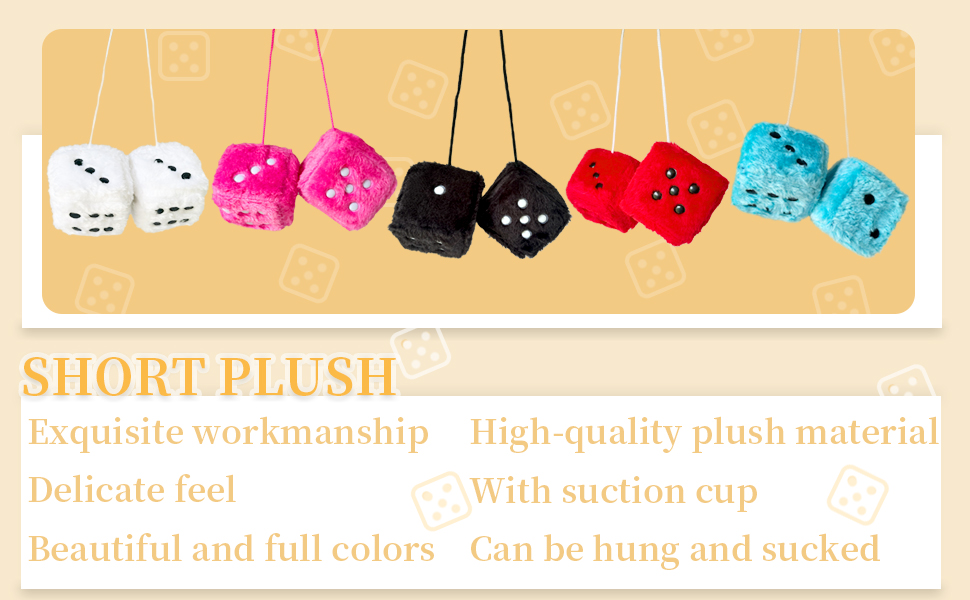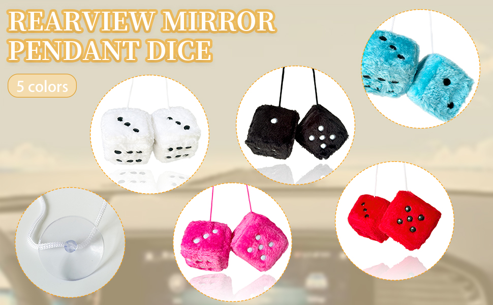 【مجموعة النرد الغامضة】سوف تحصل على زوج من النرد الأبيض الغامض لمرآة الرؤية الخلفية للتعليق في سيارتك، النرد اللطيف ذو الفراء ذو ألوان زاهية والتصميم الشخصي يضيف لمسة من المرح والأناقة إلى سيارتك.