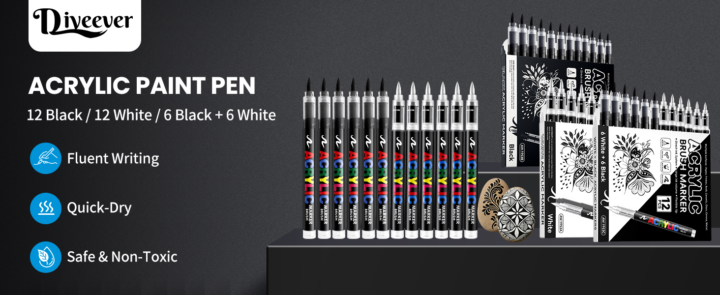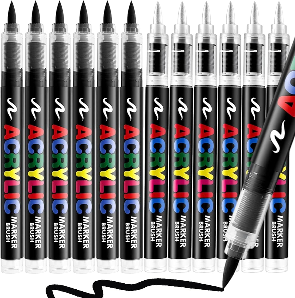 مجموعة متوازنة مثالية - تمنحك هذه المجموعة المكونة من 6 أسود + 6 أبيض لونين أكريليك أساسيين في حزمة عملية واحدة. مثالية للرسم والتحديد والإبراز والأعمال التفصيلية.