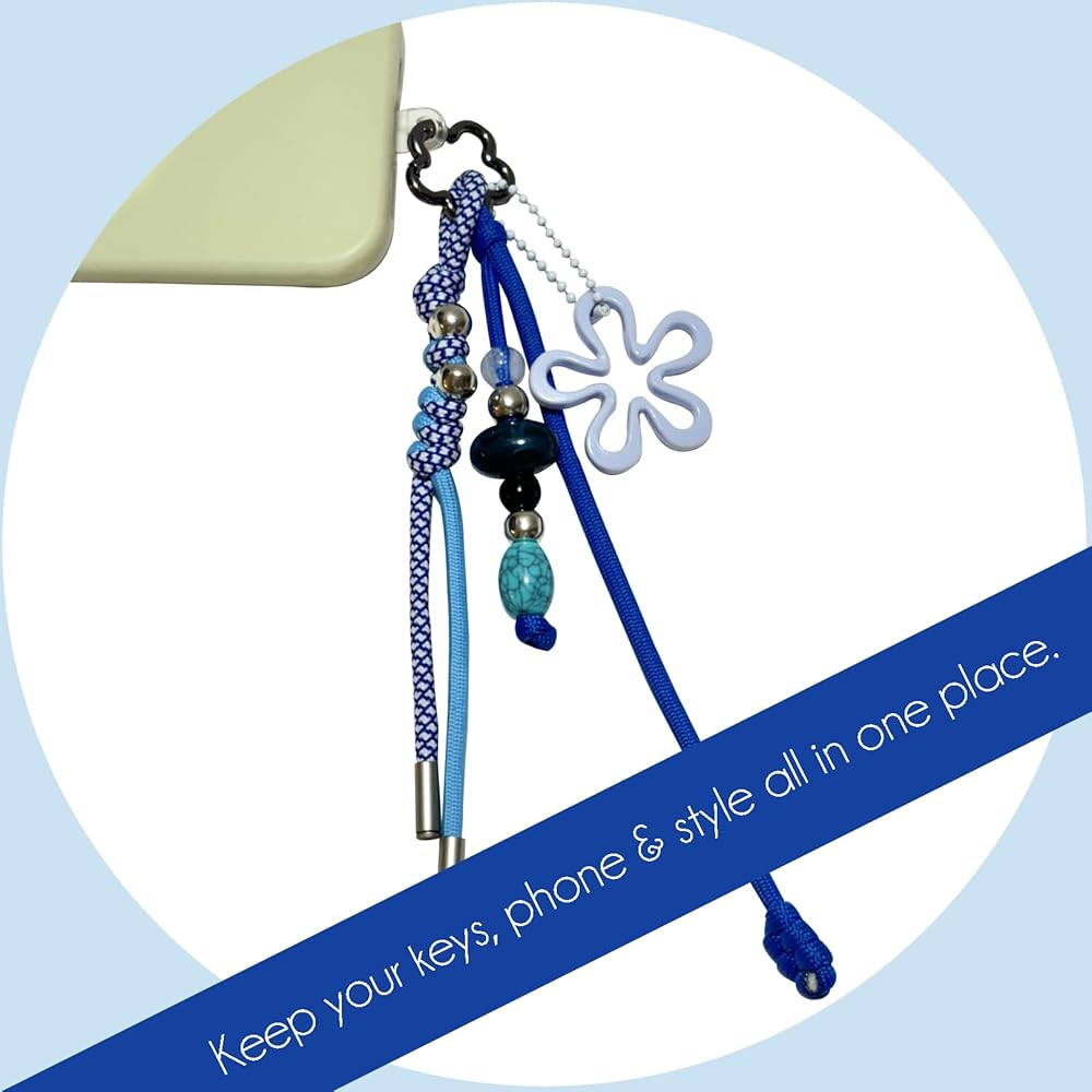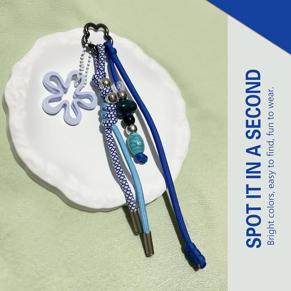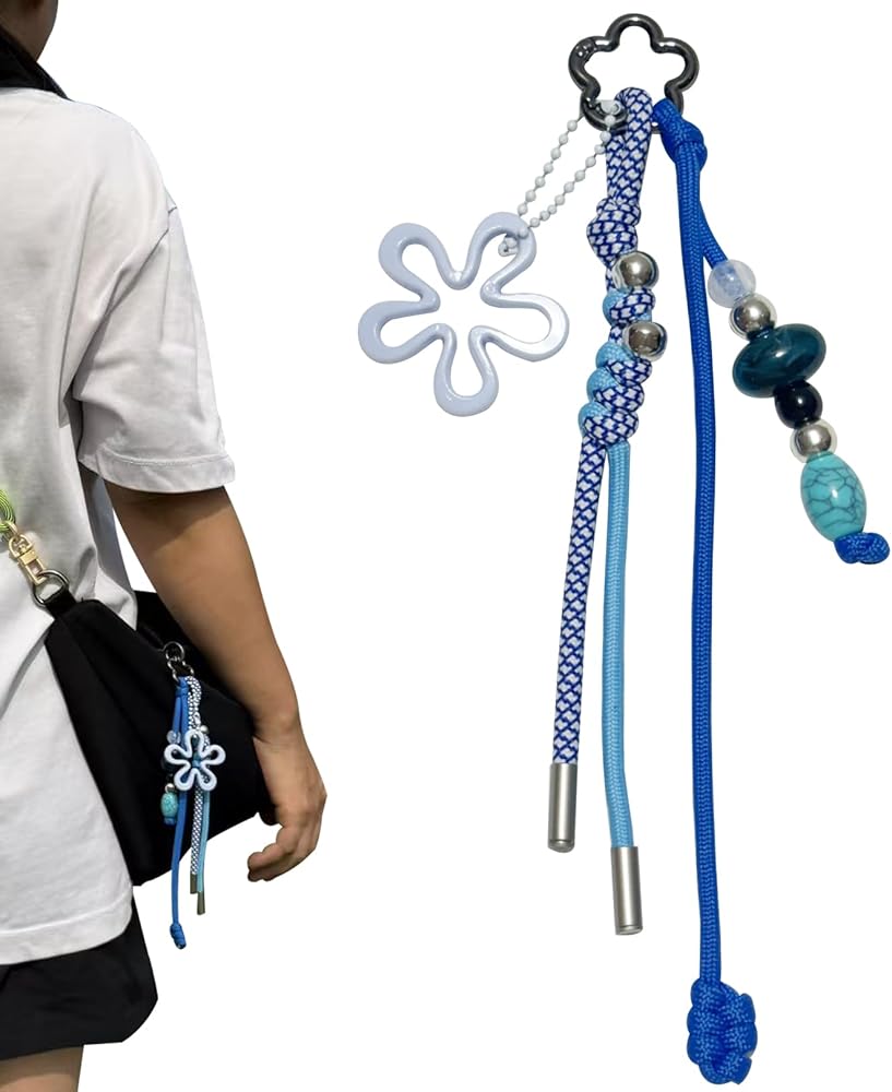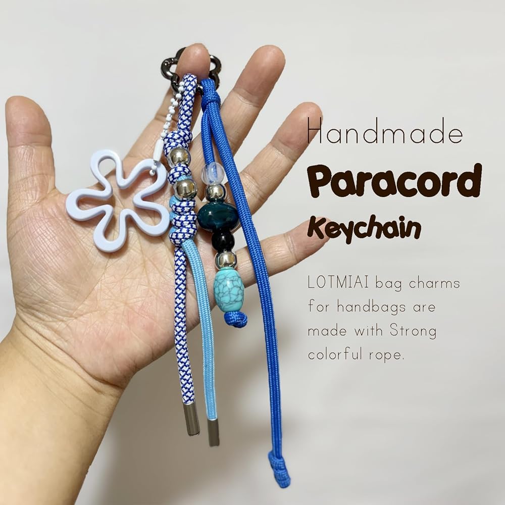 Multi-Charm Set with Versatile Use - This colorful accessory set includes multiple detachable charms—a braided paracord keychain, a flower pendant, and a beaded charm. Each piece can be used separately as a keychain or as decoration for your backpack, tote bag, purse, phone, or even camera.