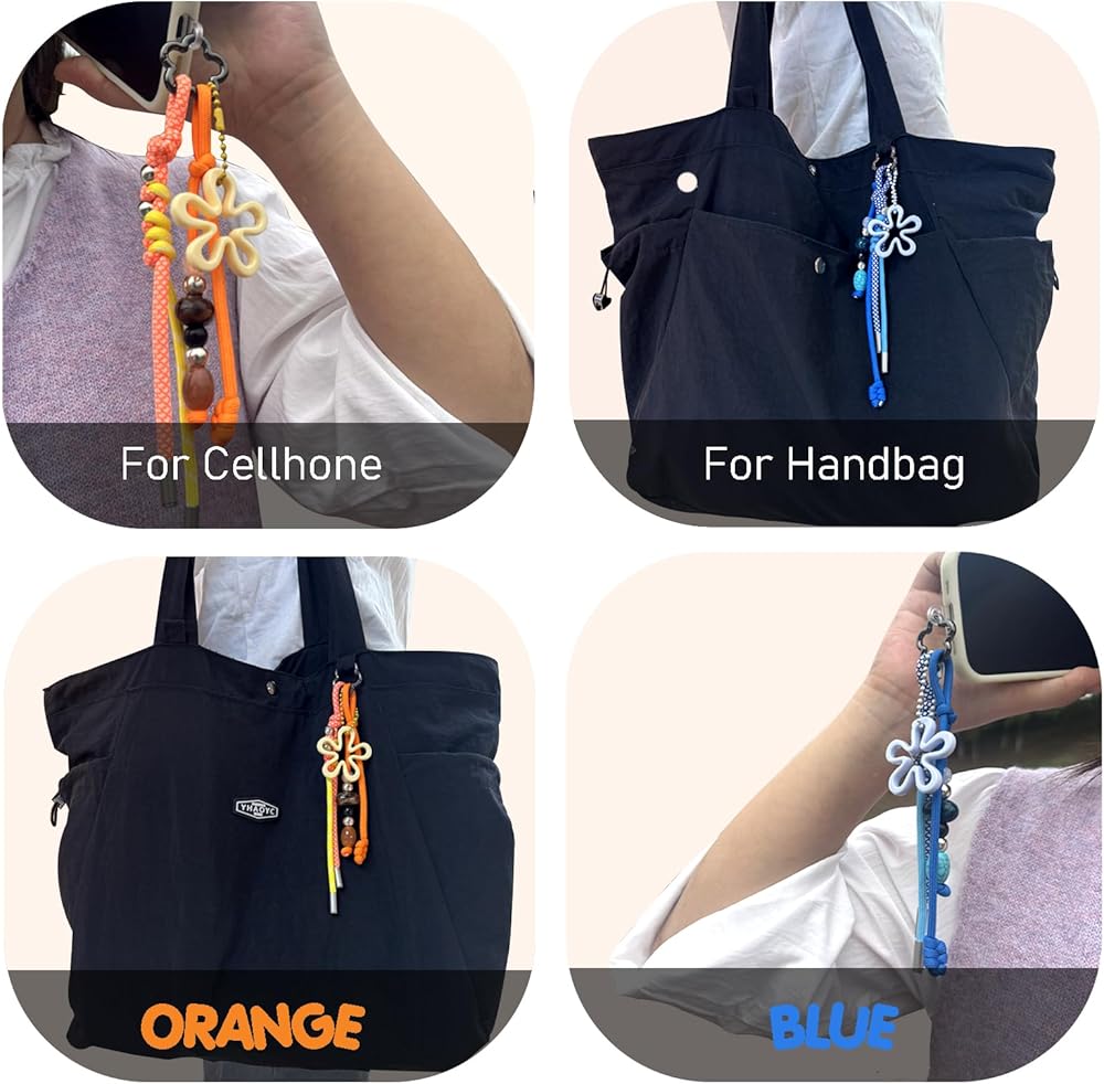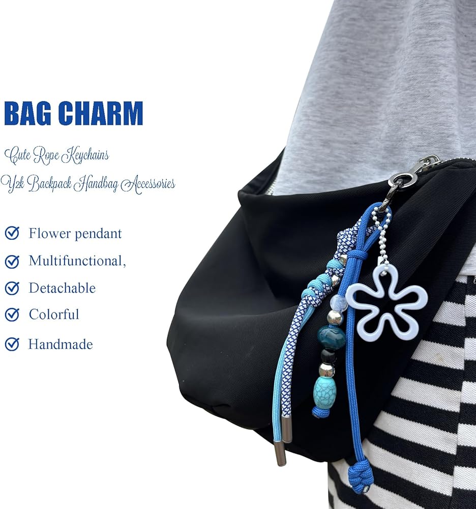 Add a burst of personality to your everyday look with our Handcrafted Colorful Bag Charm Keychain Set. Designed for those who appreciate artistry and individuality, each charm reflects a blend of maximalist flair and modern functionality. This versatile set features multiple detachable pendants—including a braided paracord keychain, flower charm, and beaded accent—all handcrafted with care and creativity. Each charm can be used independently to decorate your handbag, tote, backpack, purse, phone, or camera, offering endless styling possibilities. Made with premium materials and vibrant colors, these cute bag accessories add both beauty and utility to your daily routine. They don't just look great—they also help keep your keys within easy reach, making your bag as practical as it is stylish. Whether you're running errands, traveling, or attending a special event, this charming accessory brings a touch of joy and elegance to every occasion. It's also an ideal gift for women and girls who love unique, handmade details that make their style truly their own.