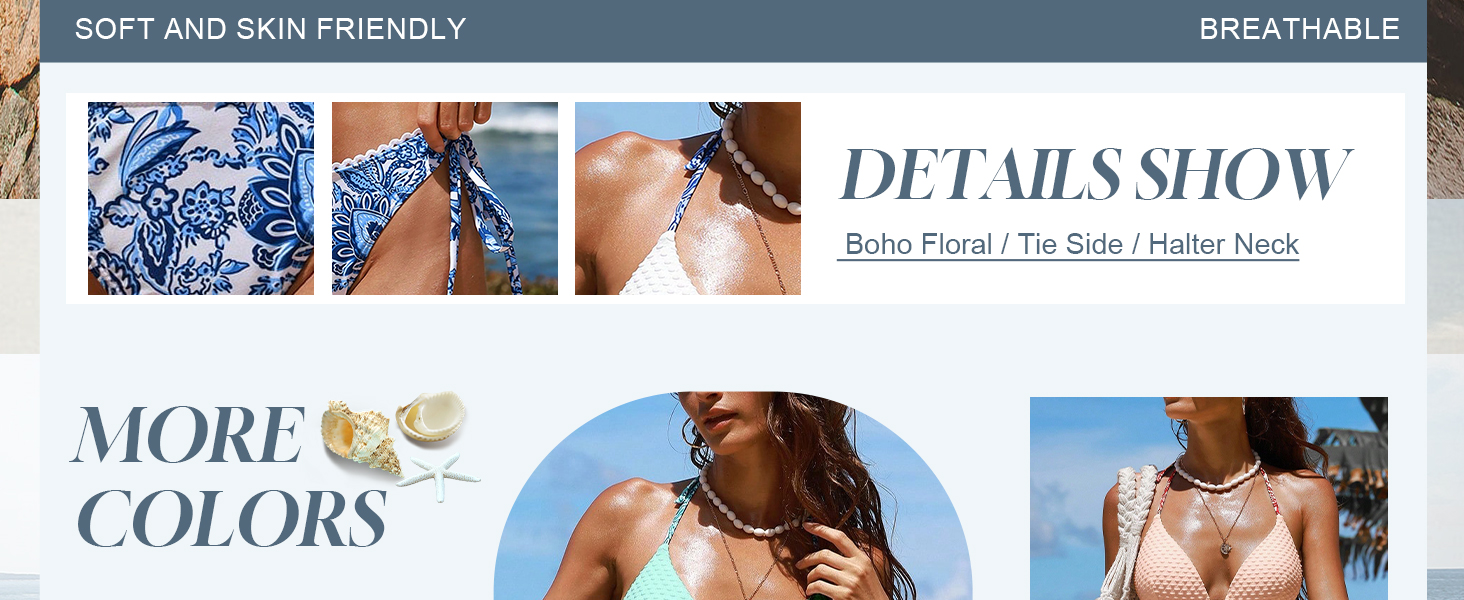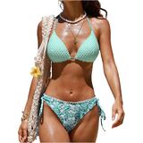 - المزايا: بدلة سباحة نسائية بخيط مثلث، زهور، جانب ربطة عنق، رقبة رسن، طقم بيكيني مكون من قطعتين