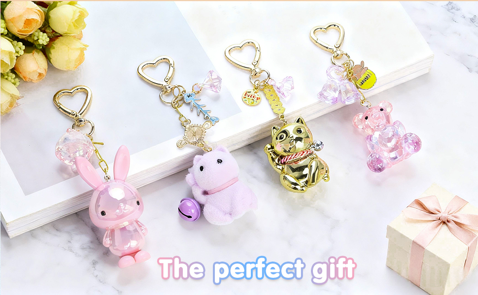 أكسسوارات متعددة الاستخدامات: مثالية لربطها بحقائب الظهر أو المحافظ أو حقائب اليد أو حقائب اليد أو مفاتيح السيارة كديكور أنيق ومرح، تأتي مع مشبك قابل للإزالة وحلقة مفاتيح، سهلة التركيب على حقيبة الظهر وحقيبة مفاتيح السيارة. سحر حقيبة فريدة وجذابة