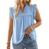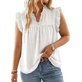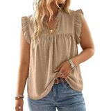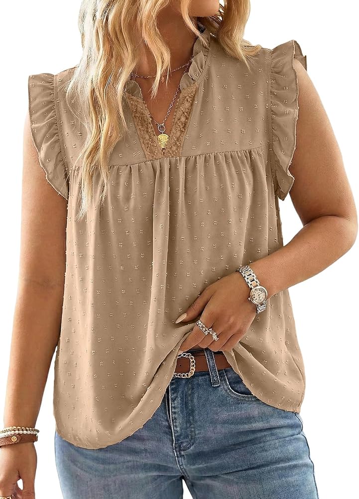 بلوزات صيفية نسائية من AlvaQ بمقاس كبير ورقبة على شكل حرف V منقط سويسري بدون أكمام مكشكشة in Kuwait