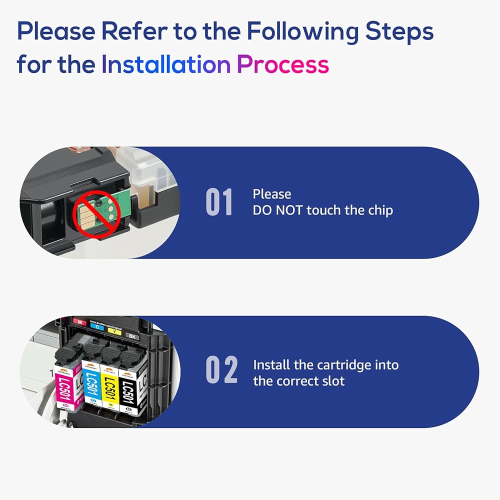 نصائح التثبيت: [1] لا تقم بإزالة الشريحة أو لمسها [2] عندما تطالبك الطابعة بـ ""غير أصلية""، يرجى النقر فوق "موافق" أو "التالي" للمتابعة [3] عندما تظهر الطابعة ""حبر منخفض"" و""فارغة"" و""استبدال خرطوشة الحبر"" وغيرها من المطالبات، يرجى إزالة خرطوشة الحبر وإعادة تثبيتها عدة مرات