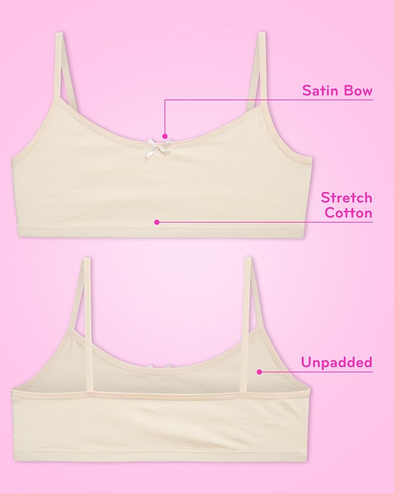 غير مبطن: حمالة صدر غير مبطنة ومتواضعة ومريحة يوميًا للفتيات؛ توفر حمالة الكامي المناسبة لعمرك الكثير من التغطية والدعم والراحة والثقة