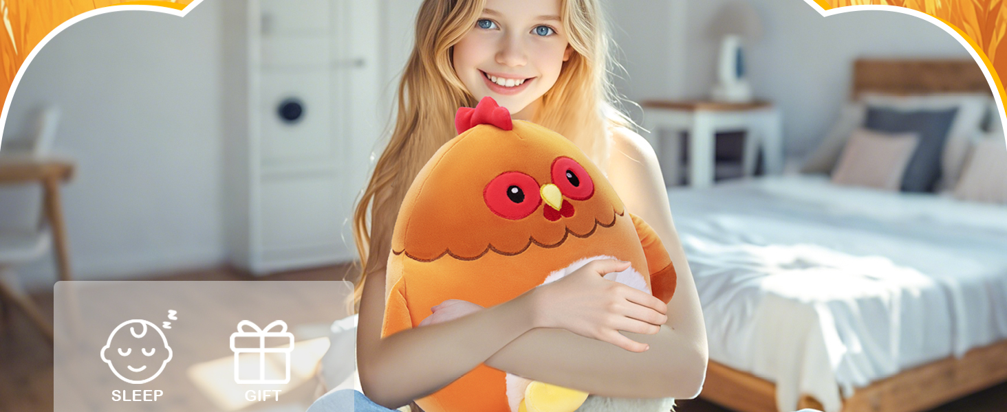 جرّب متعة احتضان وسادة الدجاجة القطيفة، المصممة للعناق والراحة. حجمها الكبير يجعلها مثالية لاحتضان الأذرع الصغيرة