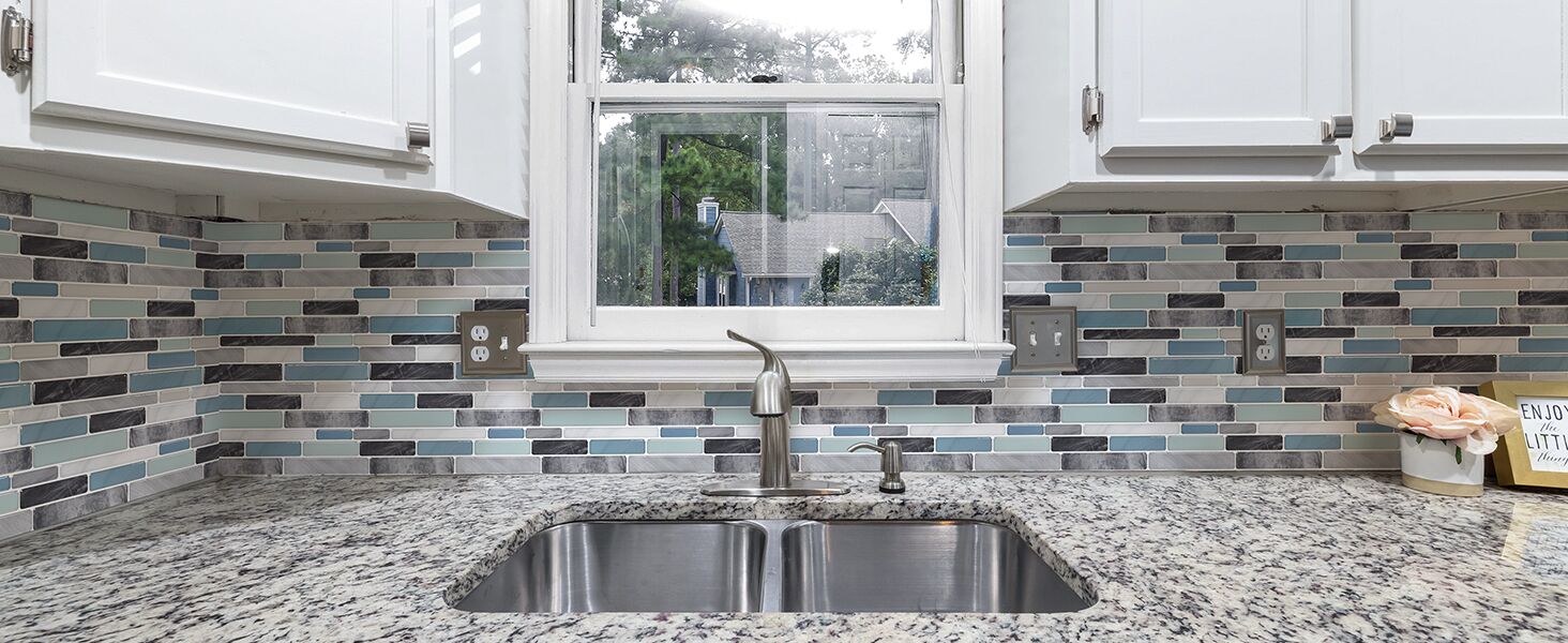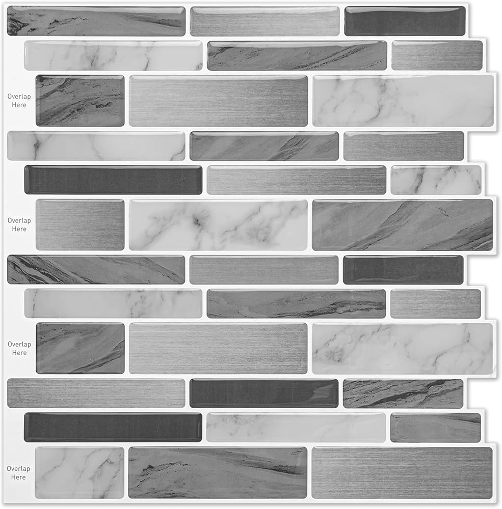 WOWSTAR 10 ورقات قابلة للتقشير واللصق بلاط باكسبلاش للمطبخ، عصا رش خلفية على البلاط لجدار المطبخ (رمادي وأزرق) in Kuwait