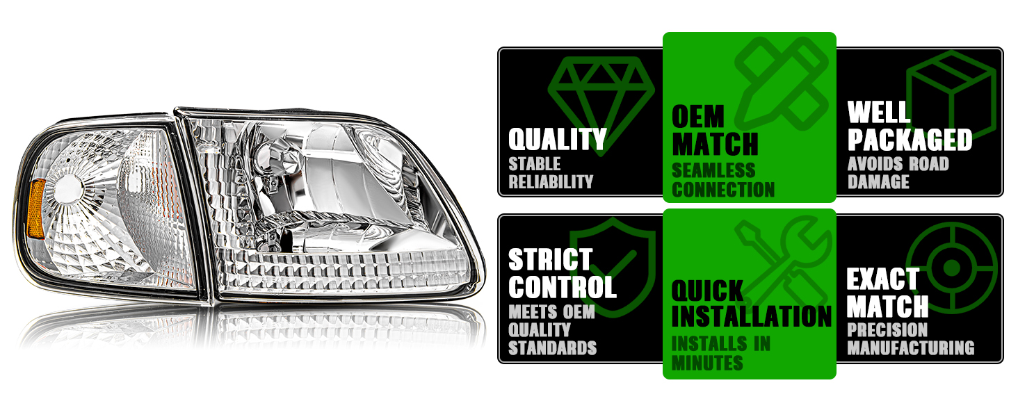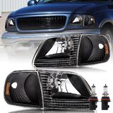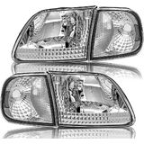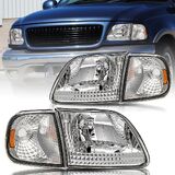 مجموعة المصابيح الأمامية BRYGHT متوافقة مع Ford 1997-2003 F150 / 2004 F150 Heritage / 1997-2002 Expedition / 1997-1999 F250 للخدمة الخفيفة مع أضواء الزاوية 4 قطع (مبيت من الكروم مع عاكس شفاف) in Kuwait