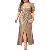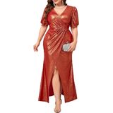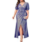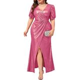 فستان ماكسي رسمي مقاس كبير من CYCLAMEN ثوب مسائي سباركلي بأكمام منتفخة ورقبة على شكل حرف v وفتحة عالية لحفلات الزفاف وحفلات الضيوف in Kuwait