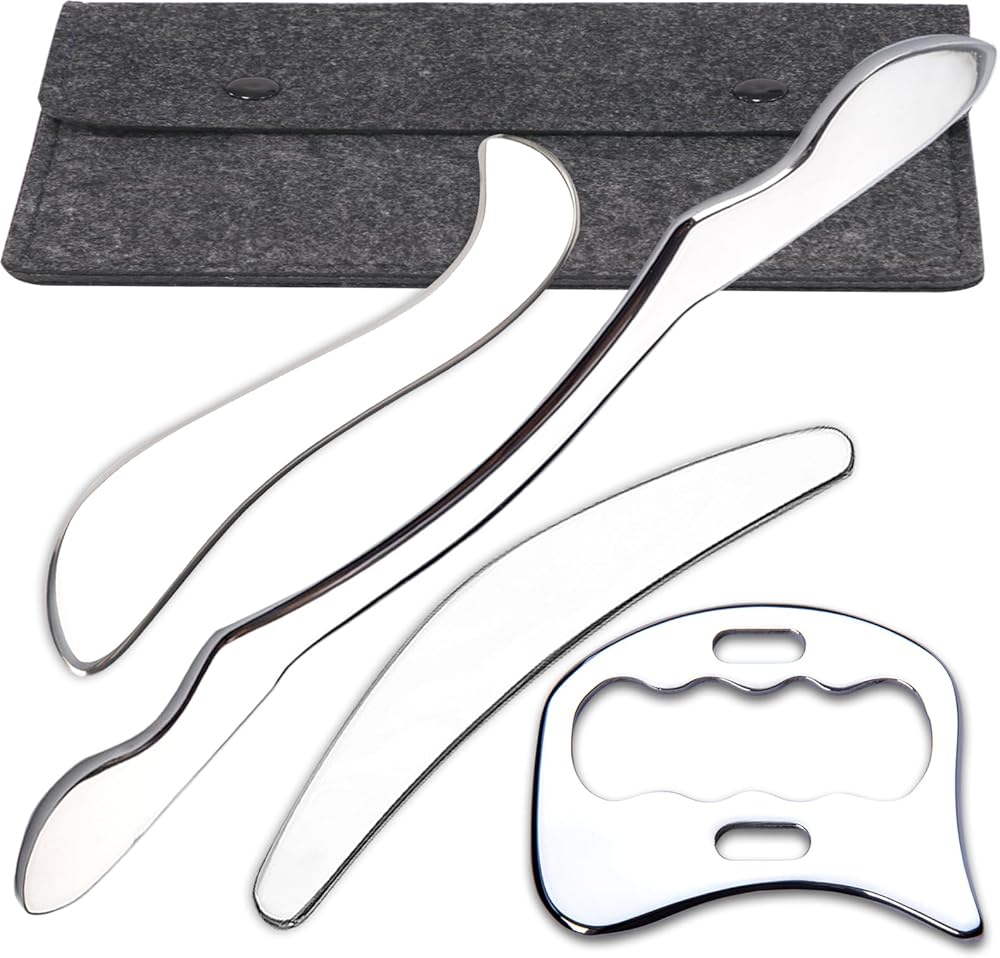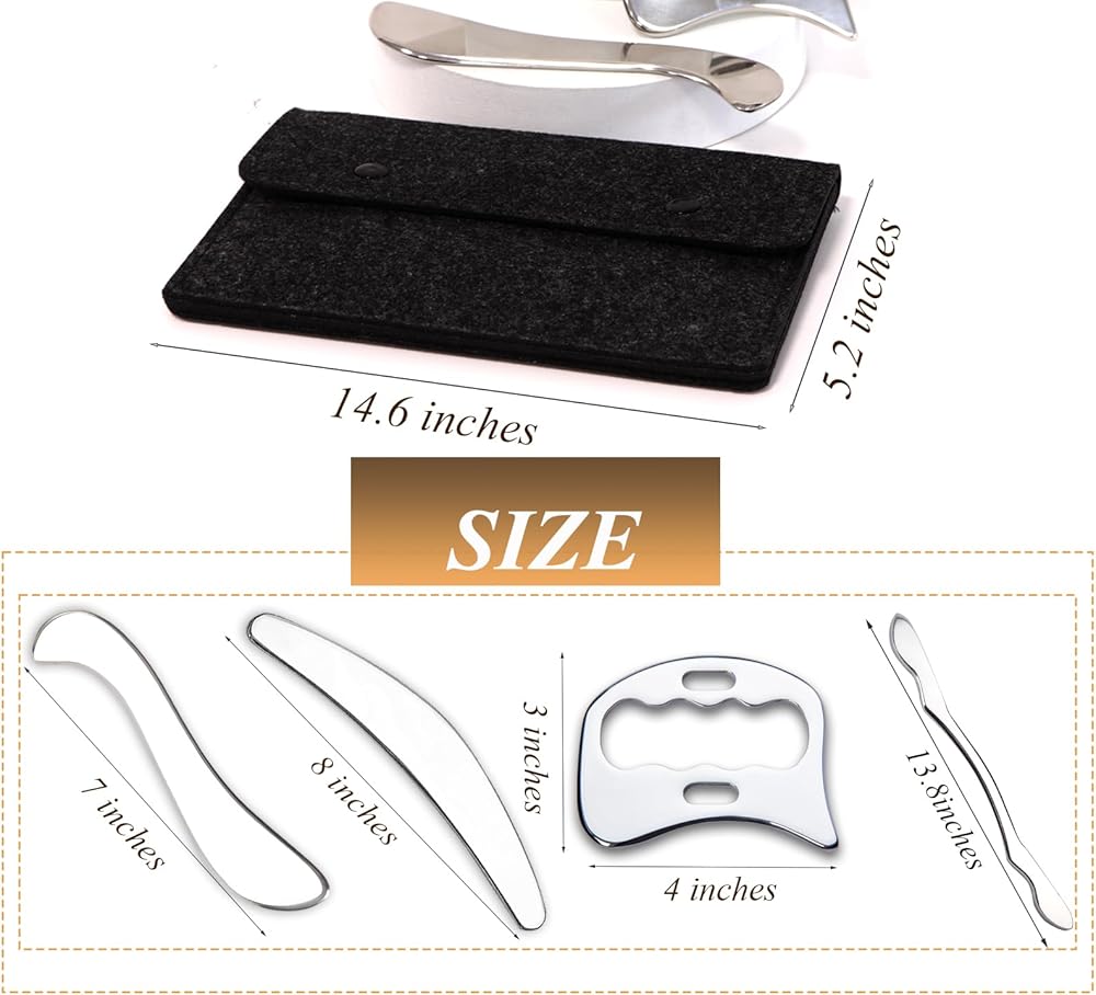 ميزة المتانة: أداة مكشطة العضلات مصنوعة من الفولاذ المقاوم للصدأ عالي الجودة ومصقولة حتى النهاية المرآة. بالمقارنة مع أداة كشط اليشم، فهي تتمتع بقوة أعلى وعمر خدمة أطول. يوفر الشكل الفريد دعمًا أفضل لتدليك أجزاء مختلفة من جسمك