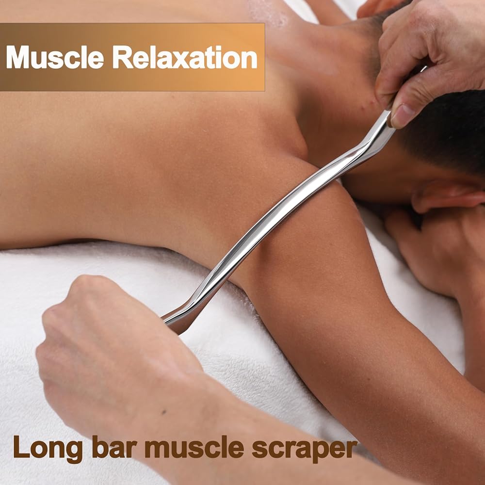 الاستخدام: يمكن استخدام أداة كشط العضلات مع مستحلب الجسم أو زيت التدليك لتغليف الحواف الناعمة على سطح الجلد الناعم، والضغط بقوة لأسفل، ثم تحريك العضلات لأسفل - ما يسمى بالاحتكاك - التدليك اللطيف - أو على طول مسار خطوط الطول بالوخز بالإبر، على طول الجلد. على السطح، قم بالتدليك بلطف حوالي 4-6 بوصات في كل مرة.