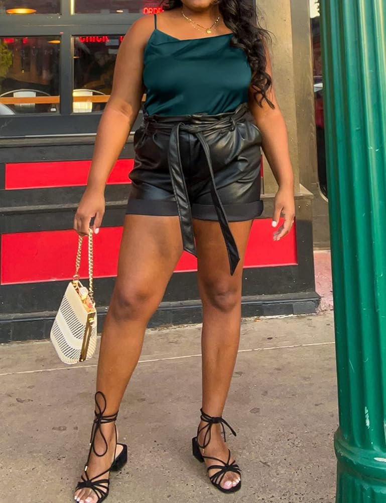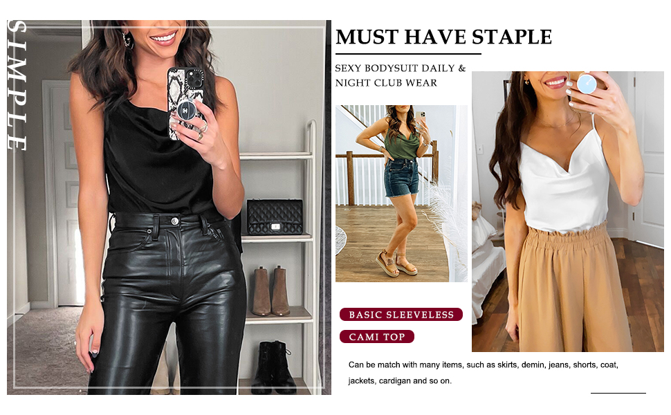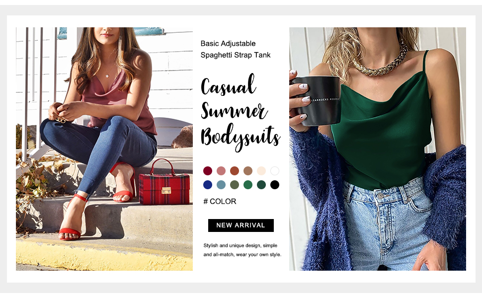 المزايا: قميص قصير من الساتان / قمصان بدون أكمام، بدون أكمام، أشرطة كتف سباغيتي، رقبة على شكل بقر جذابة، مقدمة منسدلة، أشرطة سباغيتي نحيفة قابلة للتعديل، ظهر مطاطي، بدون ظهر، تفاصيل منخفضة الظهر، جزء سفلي مرن مع قفلين سريعين.