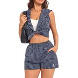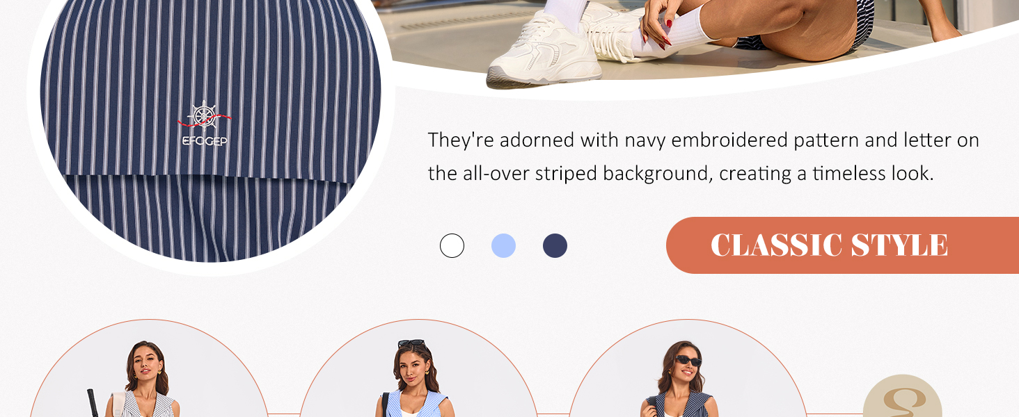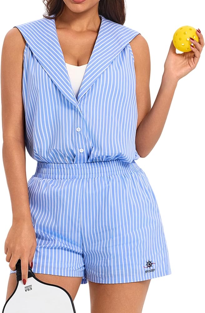 خياران للتصميم: تشتمل هذه المجموعات المطابقة للنساء على طقم تنس أنيق بدون أكمام وقميص علوي مخطط على طراز بحار مع إغلاق بزر أمامي. ارتديه غير مربوط للحصول على مظهر مريح أو مربوط في عقدة للحصول على مظهر قصير يبرز الخصر. مع شورت عالي الخصر، يوازن طقم الجولف النسائي هذا بين الأناقة البحرية الخالدة والتنوع الحديث، ويناسب مختلف أشكال الجسم والمناسبات.