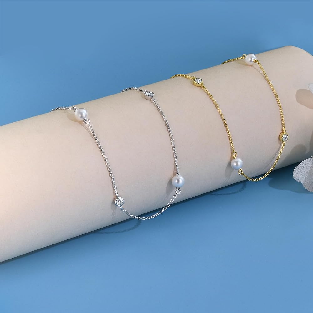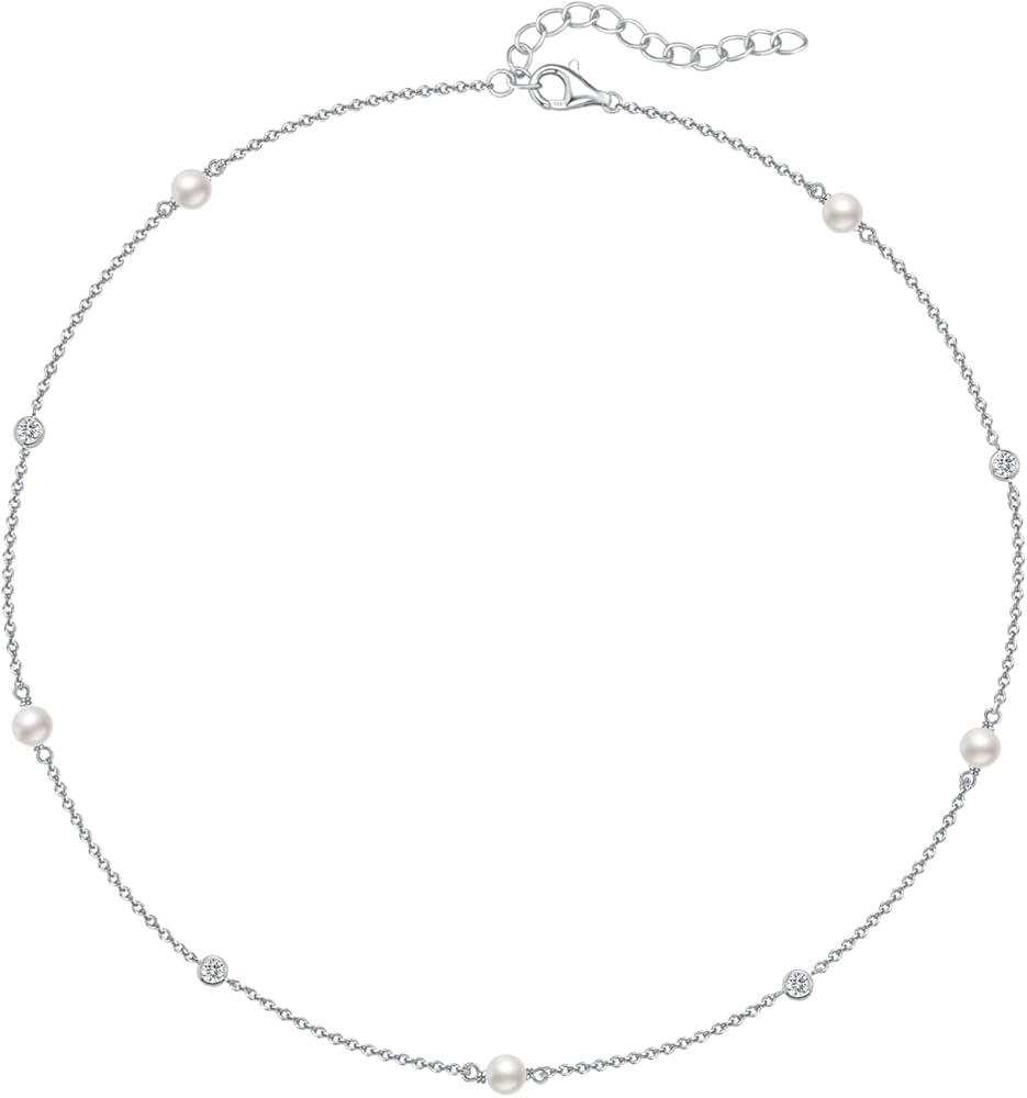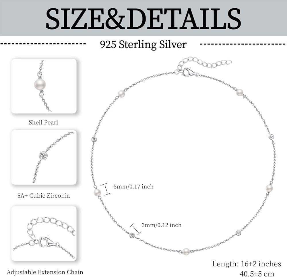 【قلادة من الفضة الإسترلينية عيار 925】قلادة اللؤلؤ مصنوعة بالكامل من الفضة الإسترلينية عيار 925، ولا تسبب الحساسية للبشرة الحساسة.