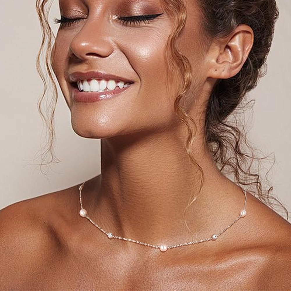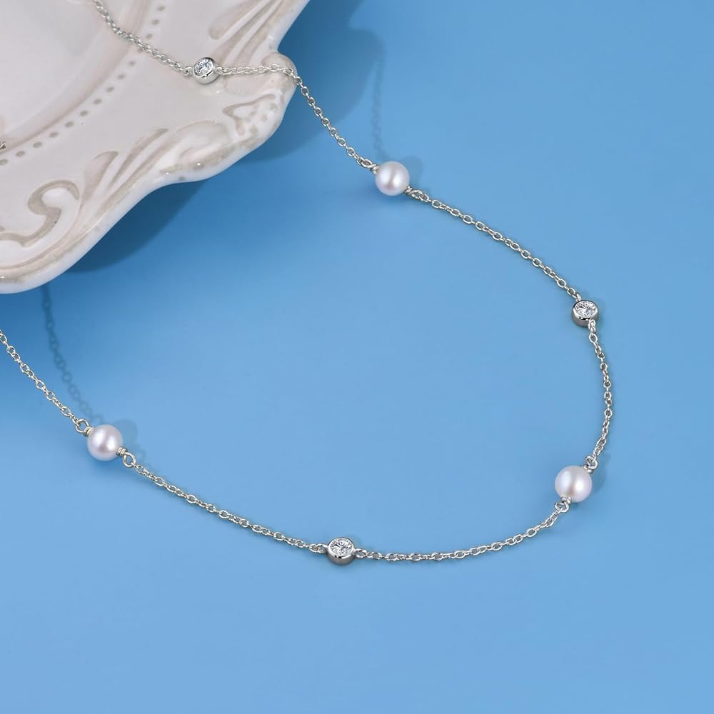 【هدايا لها】 قلادة اللؤلؤ من الفضة الإسترلينية بتصميم فريد يجعلها مناسبة للارتداء اليومي، وتجمع بين الأناقة والعملية. هدية مثالية لوصيفة العروس، أو العروس، أو الأصدقاء، أو الأخت، أو الزوجة، أو الصديقة، أو الأم كهدية صداقة، أو هدية عيد ميلاد، أو هدية ذكرى الزفاف، أو هدية عيد الميلاد، أو هدية عيد الحب أو عيد الأم