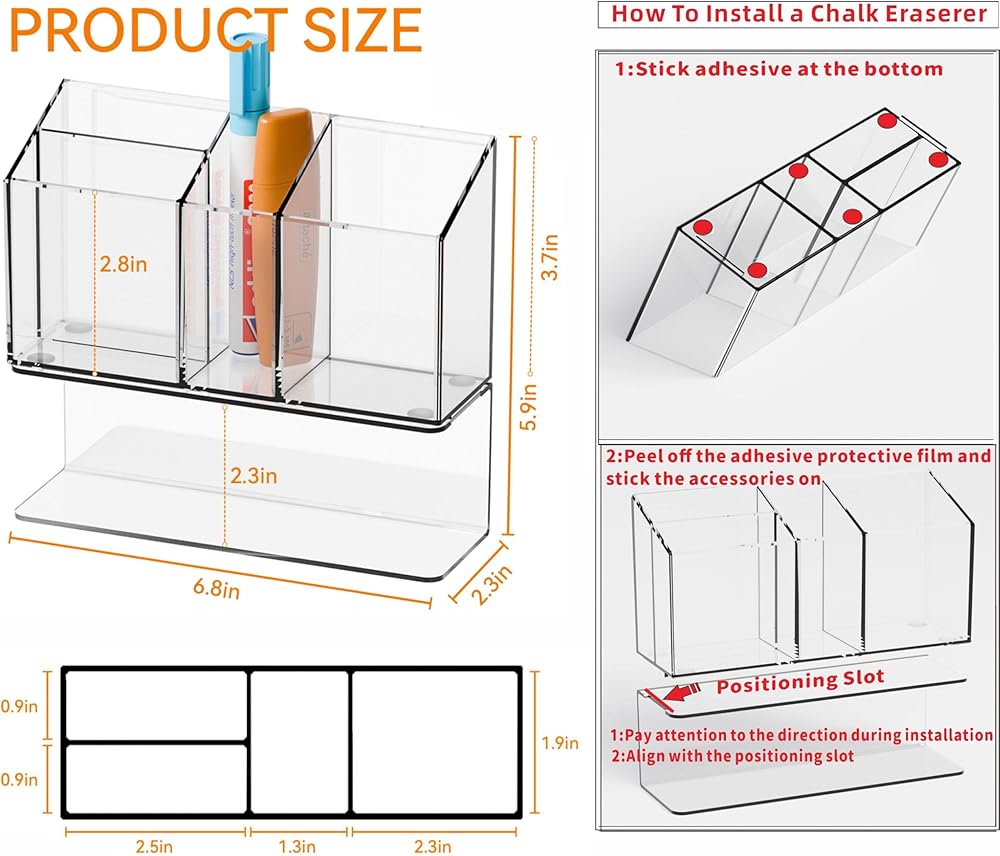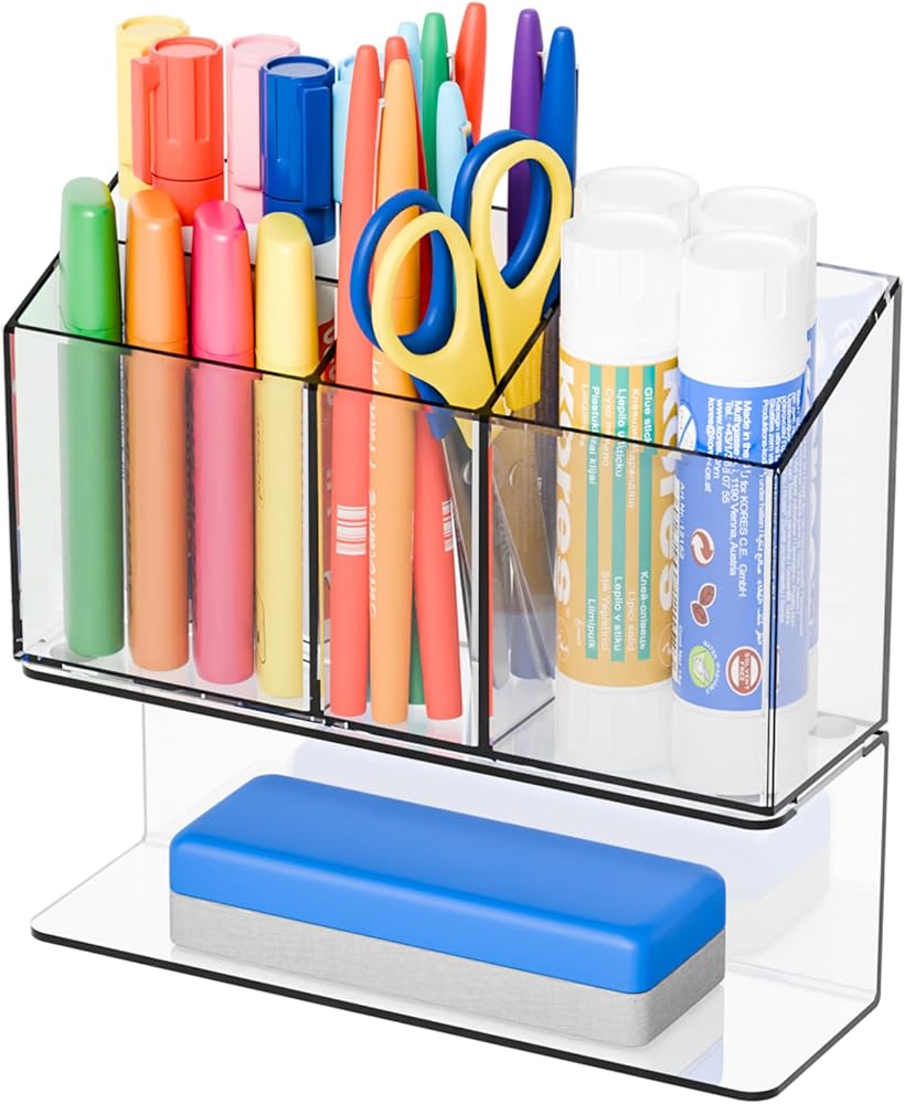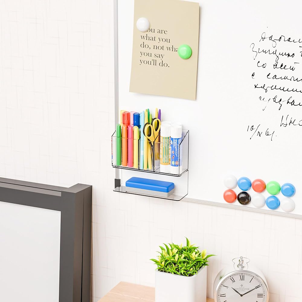 【Wall Marker Holder】Designed to save space on your desk or workspace, this wall mount dry erase marker holder can be mounted on the wall.keeps your markers and eraser off the table surface, providing a clean and clutter-free environment. Ideal for classrooms,offices,expo,refrigerator,fridge or studio and locker organizer