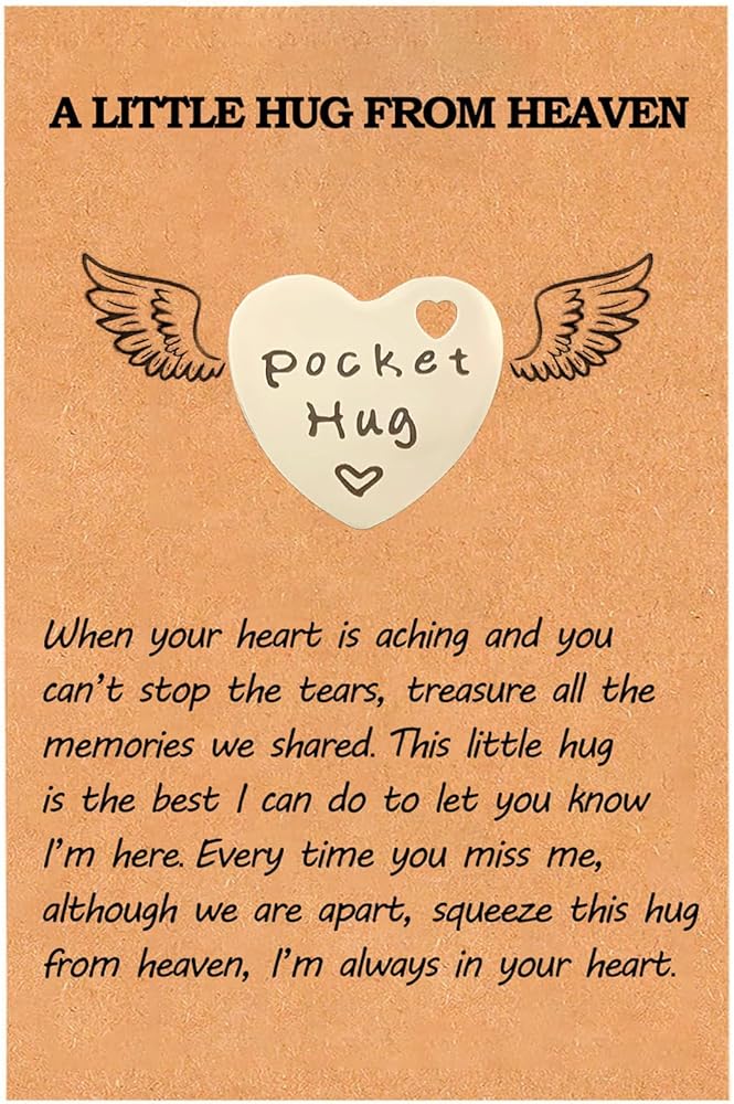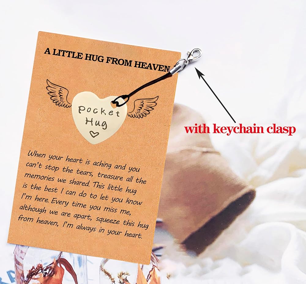 هدية خاصة: الكلمات الدافئة على البطاقة ستذكرهم أنه على الرغم من أنهم فقدوا شخصًا ما، إلا أن هذا الشخص سيعيش دائمًا في قلوبهم، وسيظلون معًا دائمًا. سوف يخفف رمز عناق الجيب هذا من حزنهم ويقلل من معاناتهم
