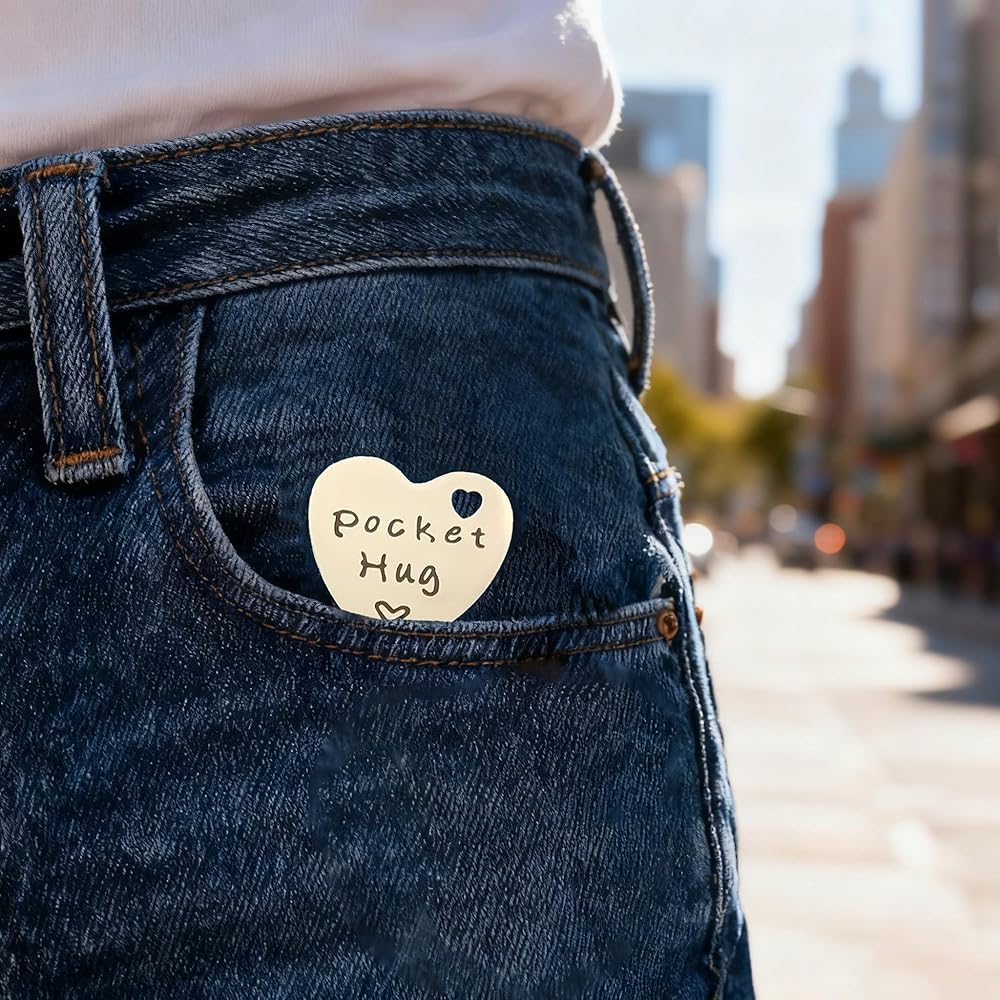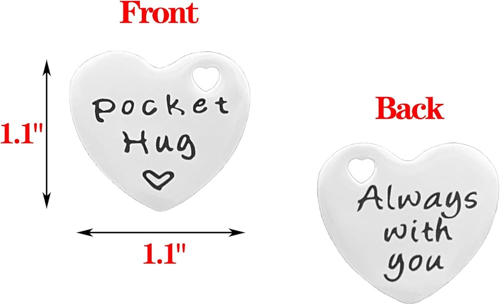 هذا القلب المصنوع من الفولاذ المقاوم للصدأ منقوش عليه عبارة "عناق الجيب" من الأمام، و"دائمًا معك" من الخلف، إنها هدية دافئة وخاصة، وسيشعر المتلقي باهتمامك ودعمك.