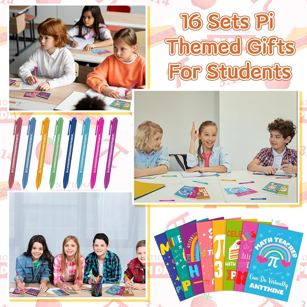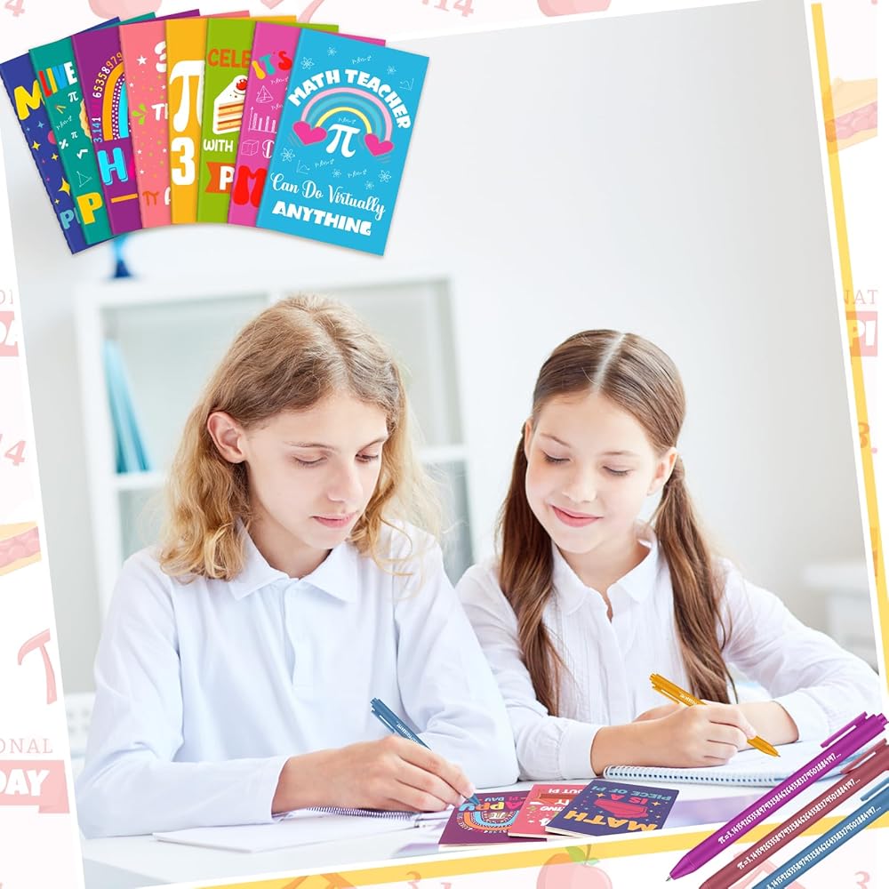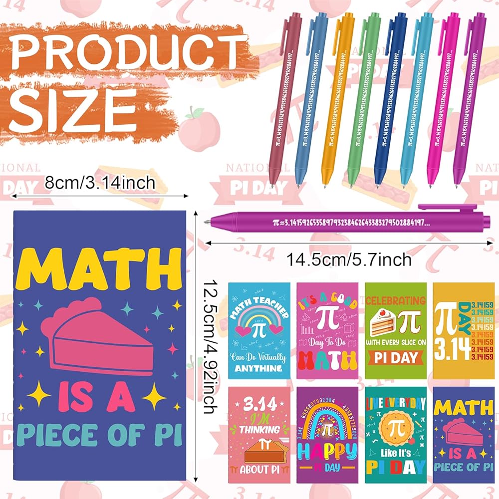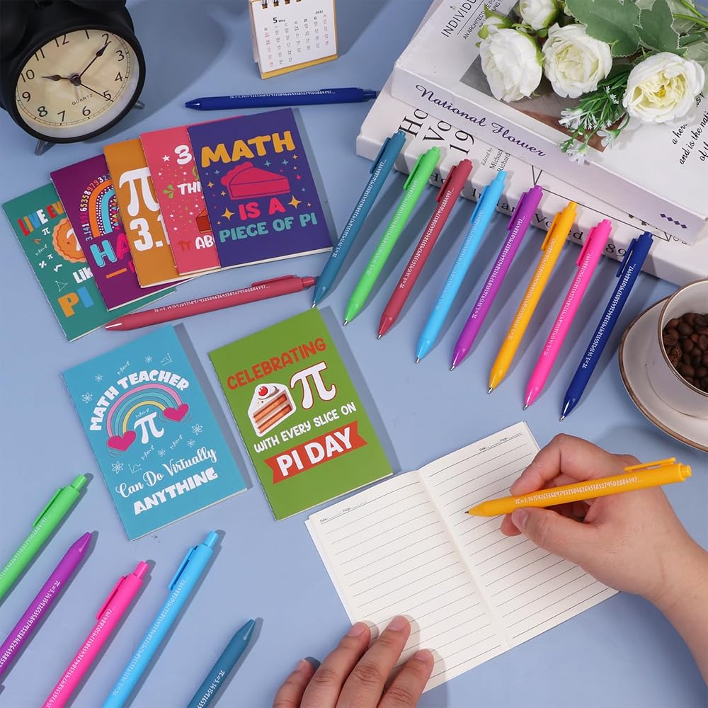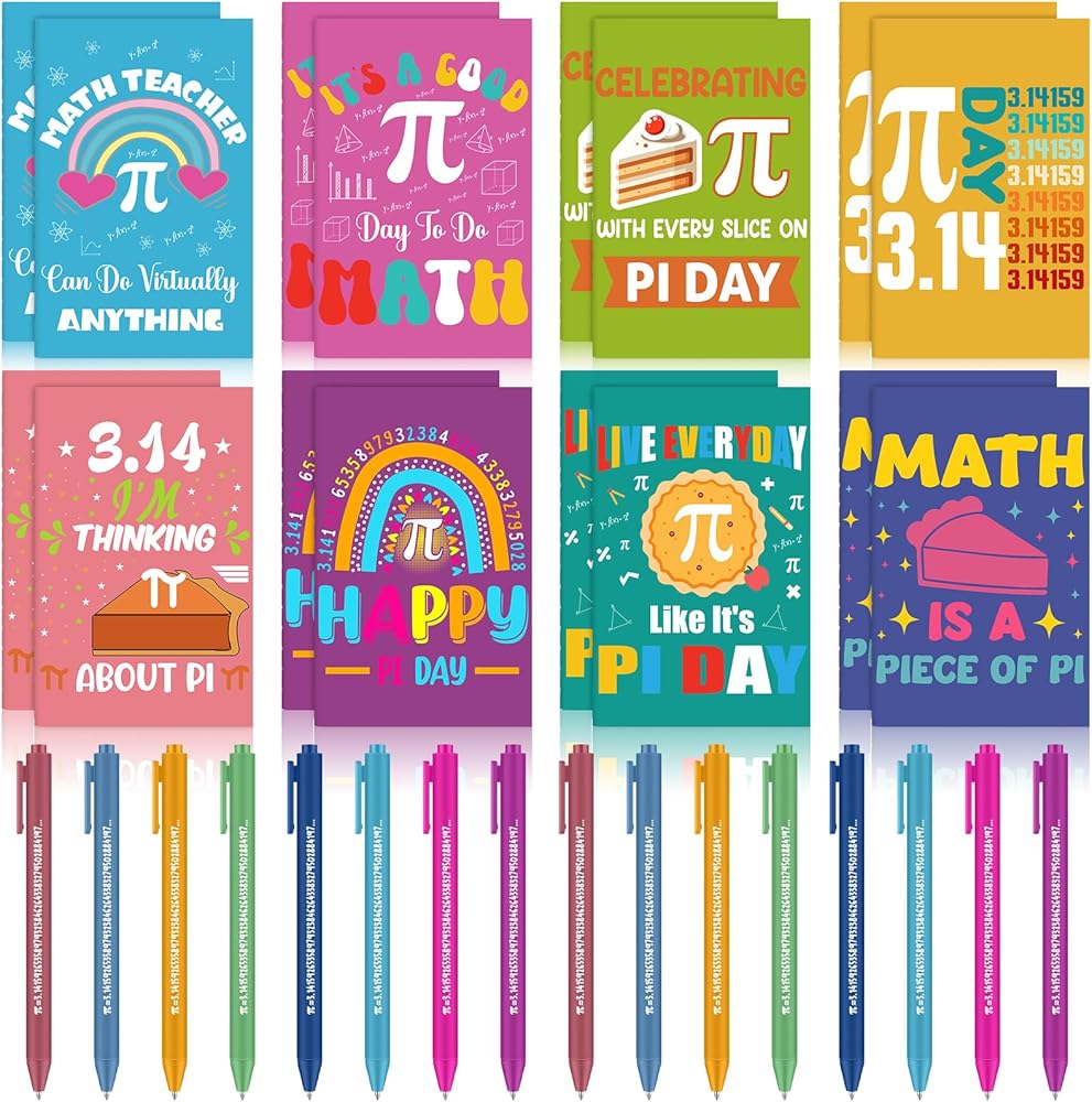 • Rich Styles--There are 16 cute pi day pens and 16 funny pi day notebooks in the set,including 8 uniquely designed ballpoint pens (2 each) and 8 exquisite notebooks (2 each).Each one has been carefully selected to ensure that it meets your needs for personal use and favors