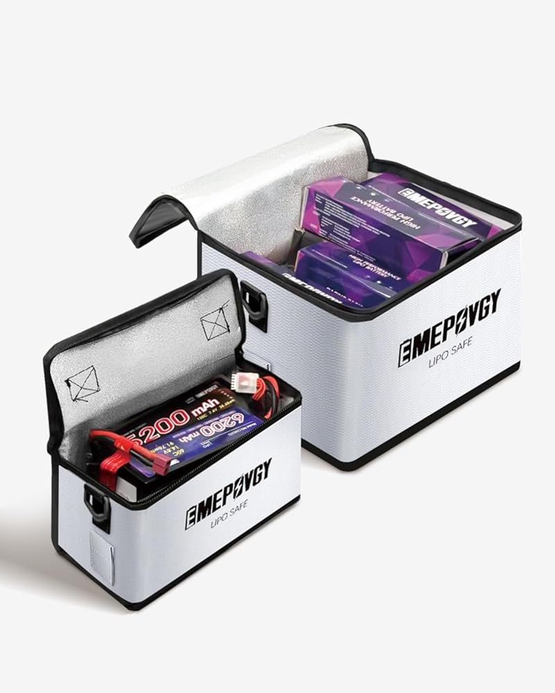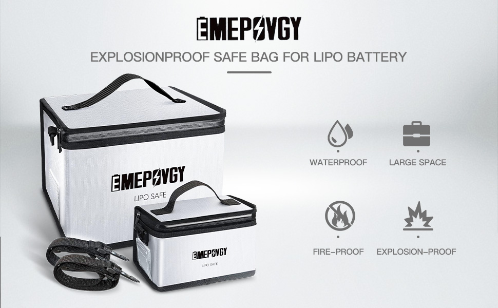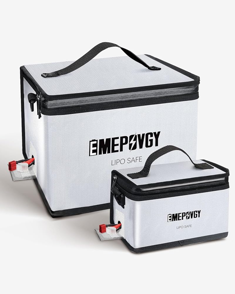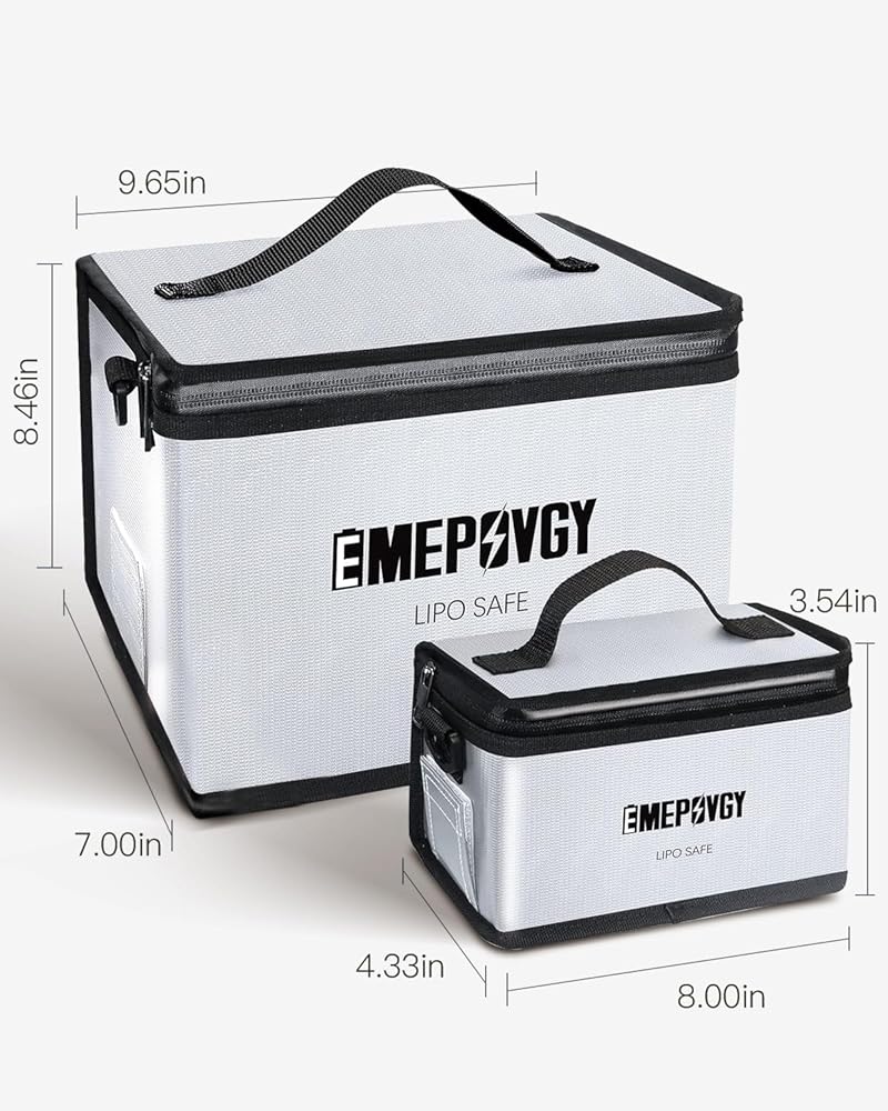 【مساحة كبيرة】- حقيبة آمنة لبطارية ليبو مقاومة للانفجار: كبير: 24.5 × 21.5 × 18 سم/9.65 × 8.46 × 7 بوصة (طول × عرض × ارتفاع)؛ صغير: 20.3 × 9 × 11 سم / 8 × 3.54 × 4.33 بوصة (طول × عرض × ارتفاع). يمكن أن تحتوي حقيبة ليبو الكبيرة على حوالي 25 قطعة من خليتين 5500 مللي أمبير في الساعة. يمكنك وضع بطاريات عادية أو بطاريات LiFe أو LiHv أو بطاريات أخرى أو بطاريات الطائرات بدون طيار