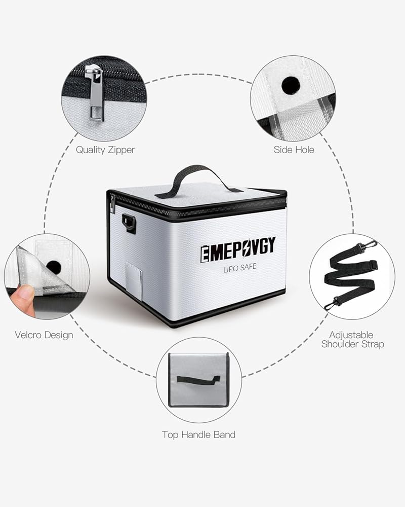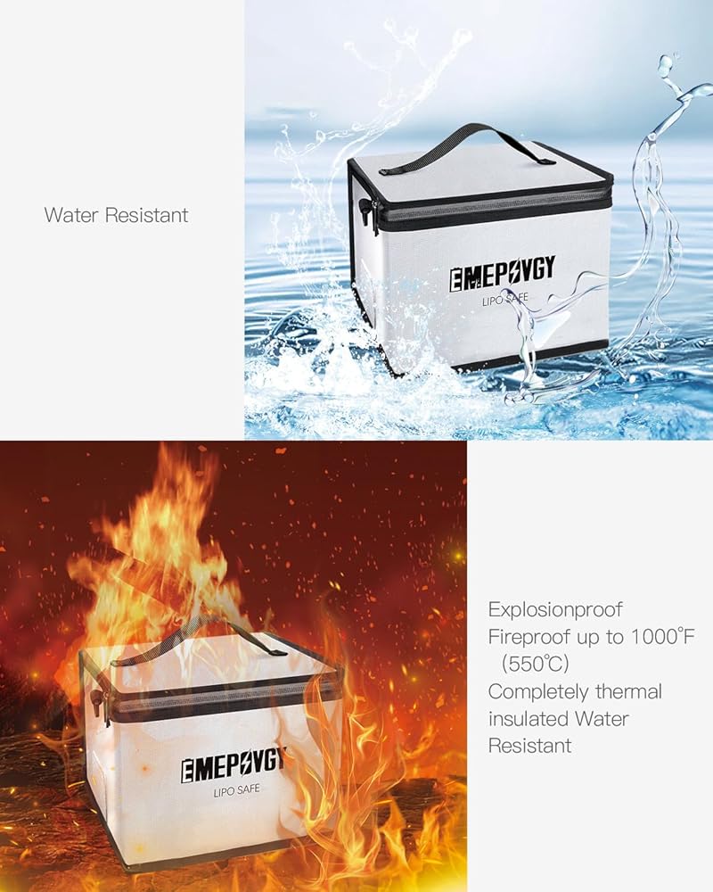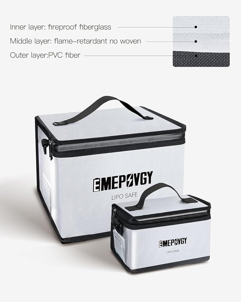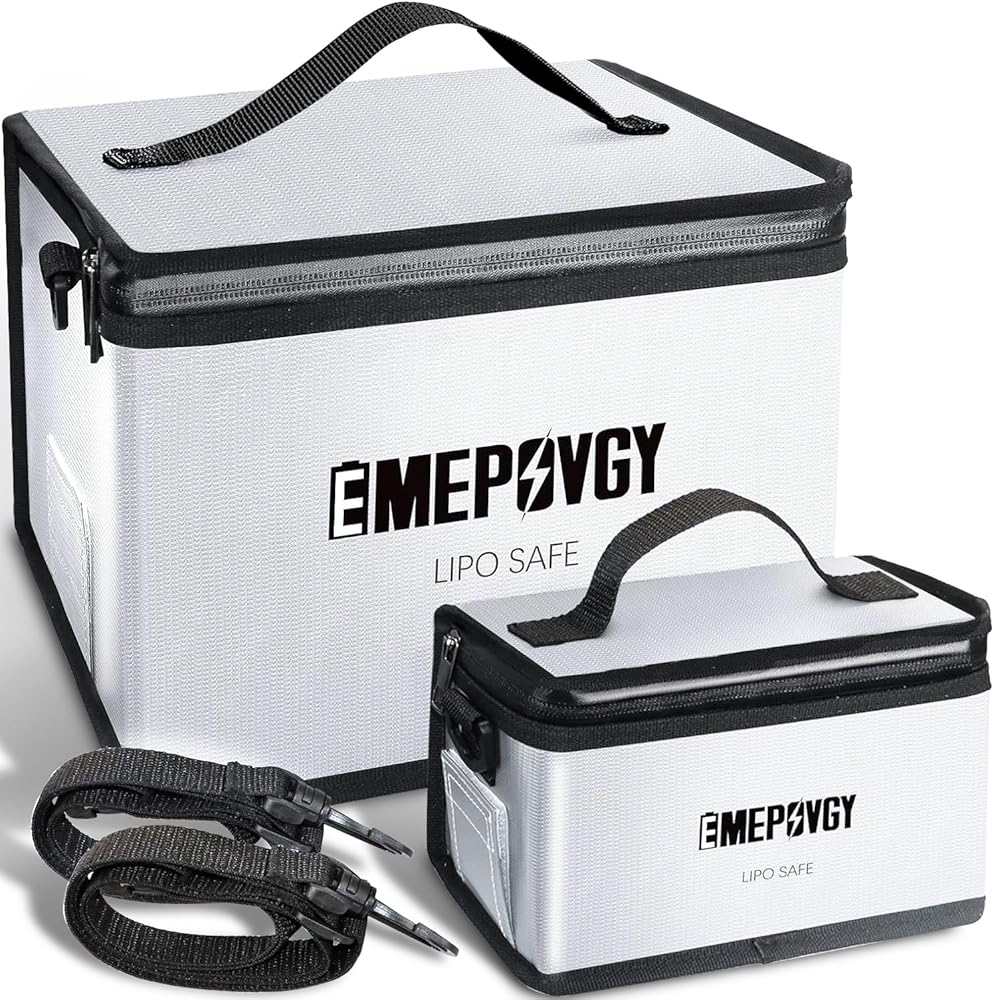 【مساحة كبيرة】- حقيبة آمنة لبطارية ليبو مقاومة للانفجار: كبير: 24.5 × 21.5 × 18 سم/9.65 × 8.46 × 7 بوصة (طول × عرض × ارتفاع)؛ صغير: 20.3 × 9 × 11 سم / 8 × 3.54 × 4.33 بوصة (طول × عرض × ارتفاع). يمكن أن تحتوي حقيبة ليبو الكبيرة على حوالي 25 قطعة من خليتين 5500 مللي أمبير في الساعة. يمكنك وضع بطاريات عادية أو بطاريات LiFe أو LiHv أو بطاريات أخرى أو بطاريات الطائرات بدون طيار