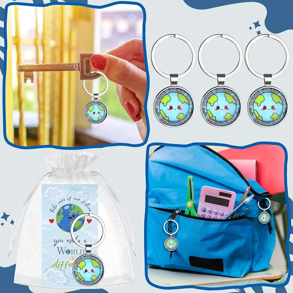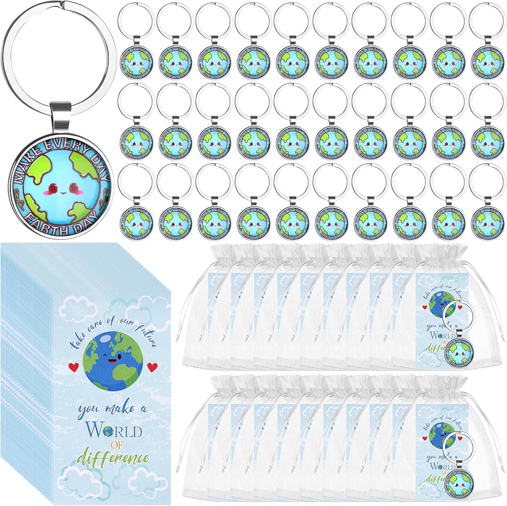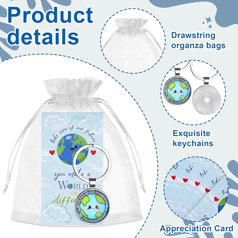 Sufficient Quantity--Our Earth Day keychain set includes 30 exquisite Earth Day keychains + 30 appreciation cards + 30 white organza bags.Whether it is personal collection,favor to relatives and friends or as favors,it can meet your needs