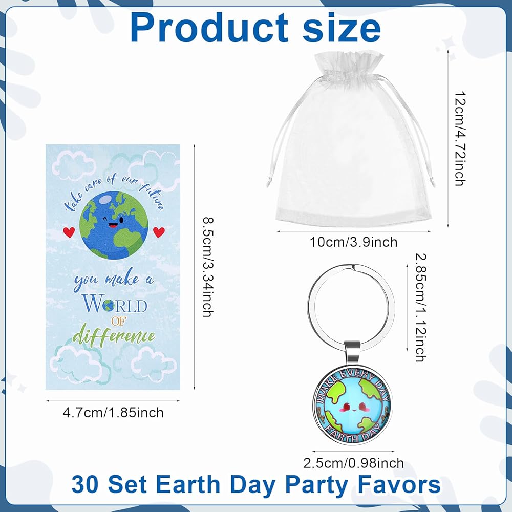 Sufficient Quantity--Our Earth Day keychain set includes 30 exquisite Earth Day keychains + 30 thank you cards + 30 white organza bags.Whether it is personal collection,favor to relatives and friends or as favors,it can meet your needs