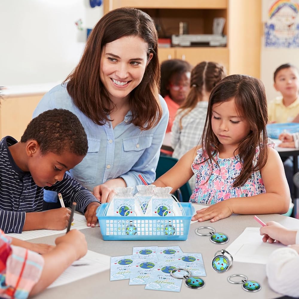 60 قطعة من هدايا حفلات يوم الأرض - 30 سلسلة مفاتيح ليوم الأرض - 30 بطاقة شكر - 30 حقيبة أورجانزا - إكسسوارات إنقاذ الكوكب - ستصنع عالمًا من الاختلاف - 2025 الوعي الأخضر للأطفال والنساء والرجال