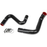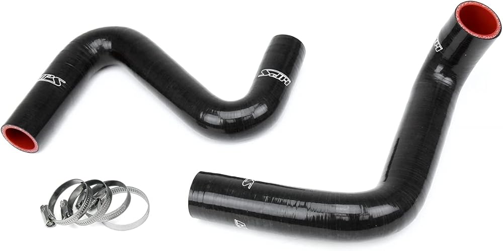 HPS high temperature 3-ply reinforced silicone radiator hose kit (part number 57-1957-BLK) replaces 1989-1998 Nissan 240SX with LS Swap (LS1 water pump, KOYO S13/S14 V8 swap radiator) rubber lower and upper radiator coolant hoses with high-heat resistance material which meets or exceeds OE specifications (Maximum temperature rating: 350F). The premium grade high-heat resistance reinforced silicone hoses are made with correct bends and curves to ensure perfect fitment. Includes 100% stainless steel non-perforated embossed hose clamps for easy installation, which do not cut through the silicone hose. Prevent and fix the coolant leaking and engine overheating problem caused by cracked, damaged or collapsed rubber lower and upper radiator coolant hoses. Race proven design with long lasting quality and engineered for extremely high temperature service (Max. 350F) and prolonged exposure to under-hood and coolant heat. Silicone hose water permeation rate is 10 to 15 times greater than standard EPDM rubber hose. Checking water level regularly is highly recommended when silicone coolant hoses are used in a daily driving vehicle. Warranty: 2 Years.