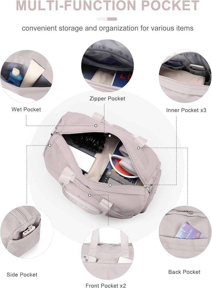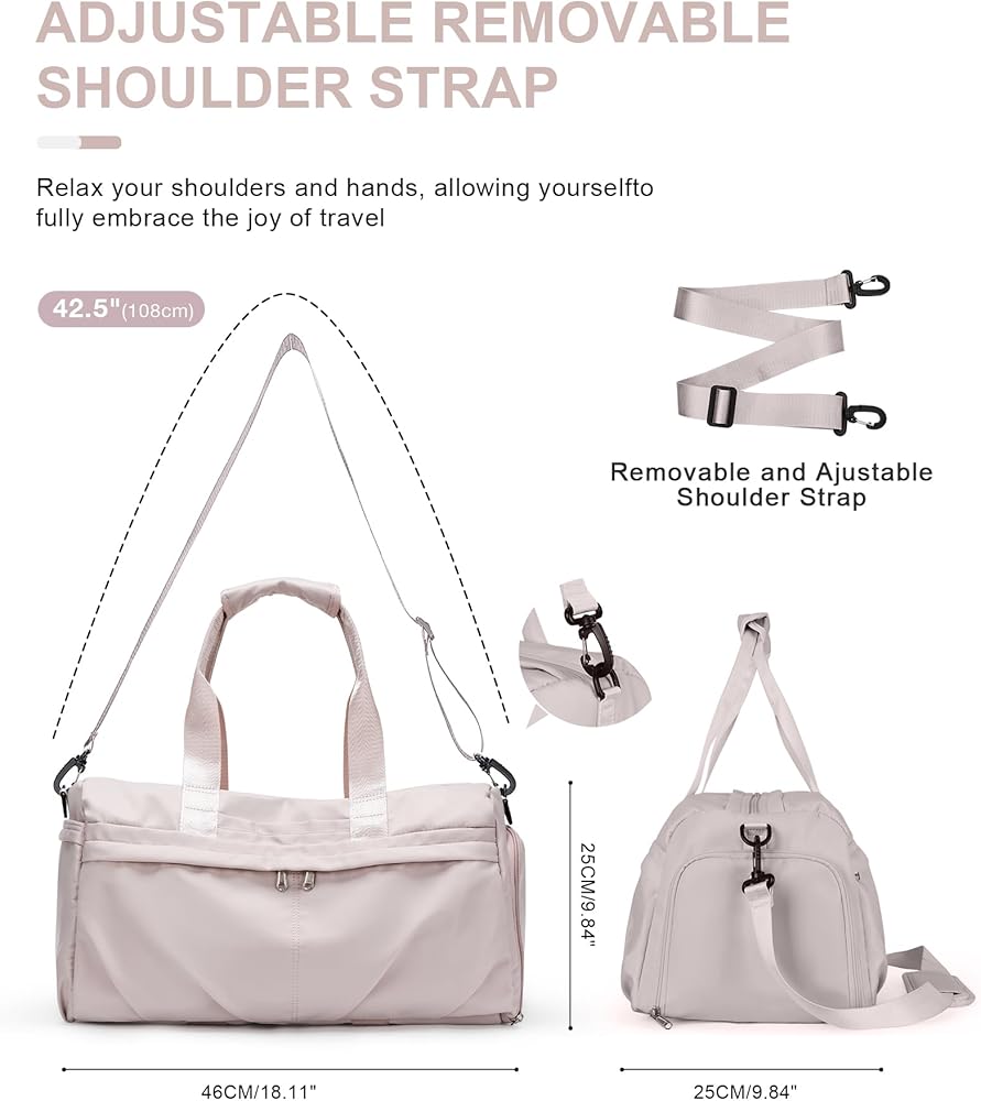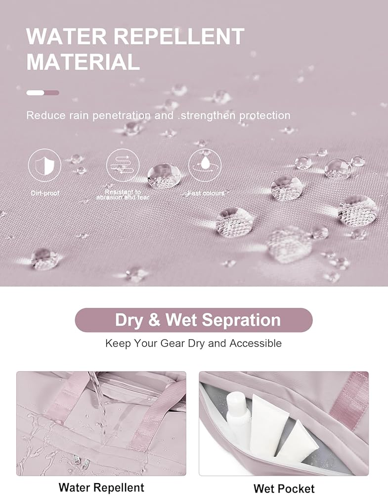 【جيب رطب مقاوم للماء وجاف】الحقيبة مصنوعة من مادة مقاومة للماء عالية الكثافة لطرد الماء والحفاظ على المحتويات بالداخل جافة. تحتوي الحقيبة على حجرة مصممة خصيصًا لفصل العناصر الجافة عن العناصر الرطبة مثل الملابس المبللة أو المناشف