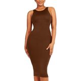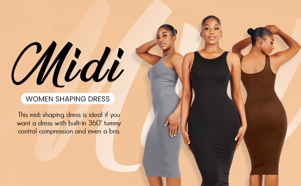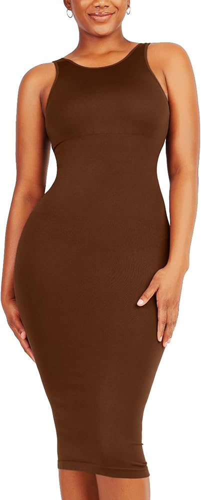 فساتين للنساء 2023 ملابس داخلية للتحكم في البطن I ميدي بدون أكمام ورقبة عالية نحت فستان محدد شكل الجسم in Kuwait