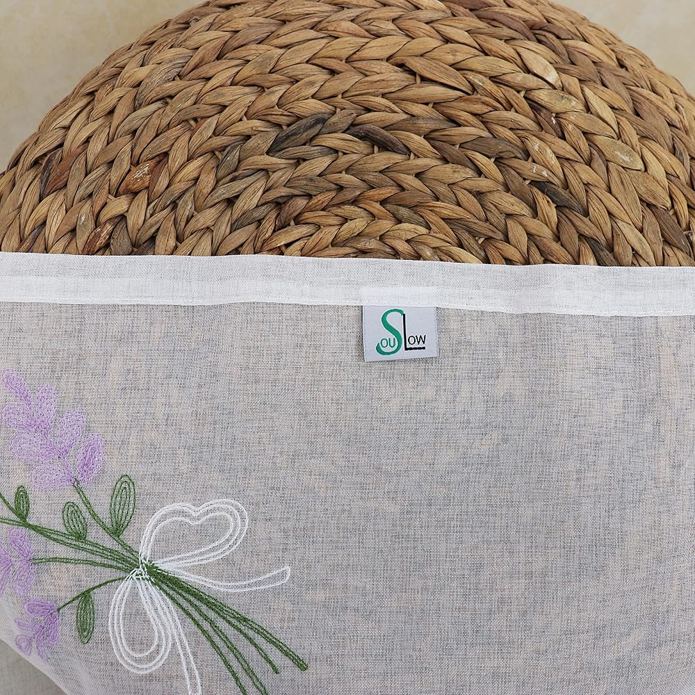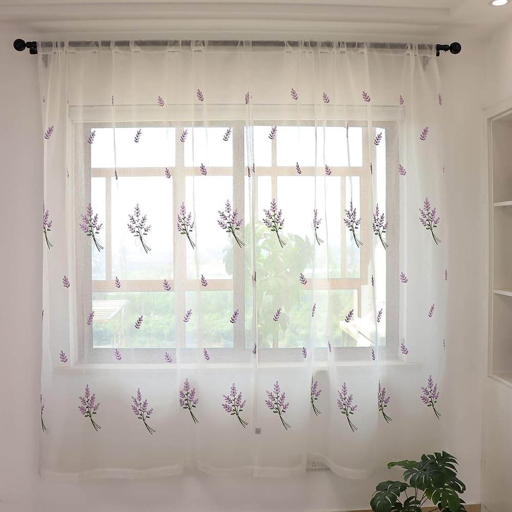 SLOW SOUL مجموعة من لوحتين ستائر شفافة من الكتان الأرجواني على شكل زهرة أرجوانية من الكتان الصناعي ستائر نافذة شبه شفافة لغرفة النوم وغرفة المعيشة وجيب قضيب 52 عرضًا × 96 طولًا بوصة