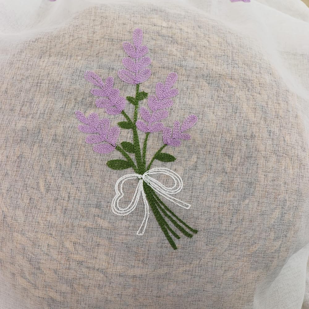 ينقلك جدار من الخزامى الأرجواني إلى بروفانس الجميلة. التطريز الرائع وأقمشة الكتان المقلدة تجعلها أكثر حساسية.