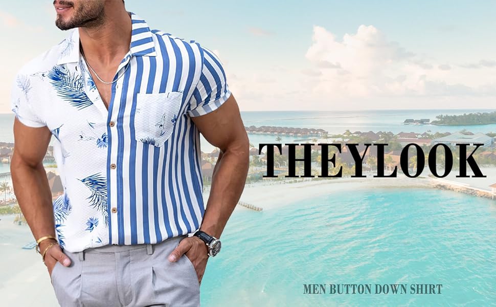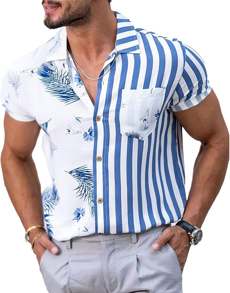 قمصان رجالي صيفية بأكمام قصيرة مزهرة بأزرار سفلية، قميص مرقع للشاطئ in Kuwait