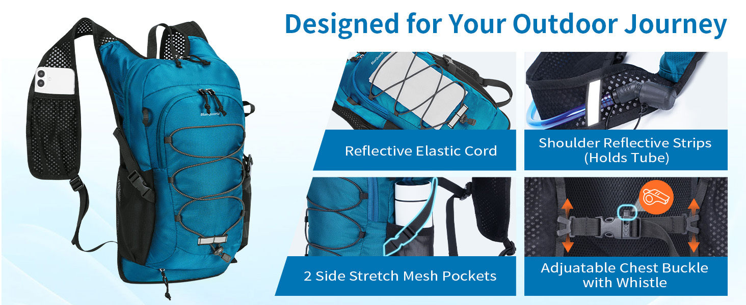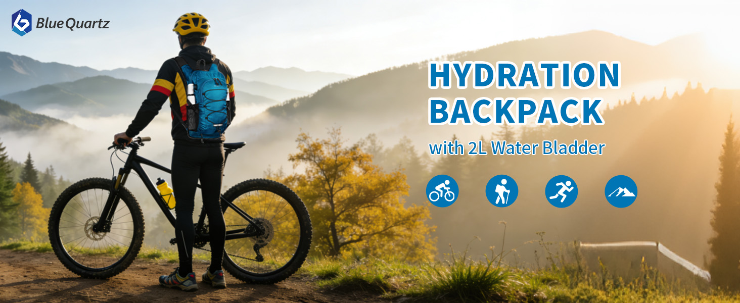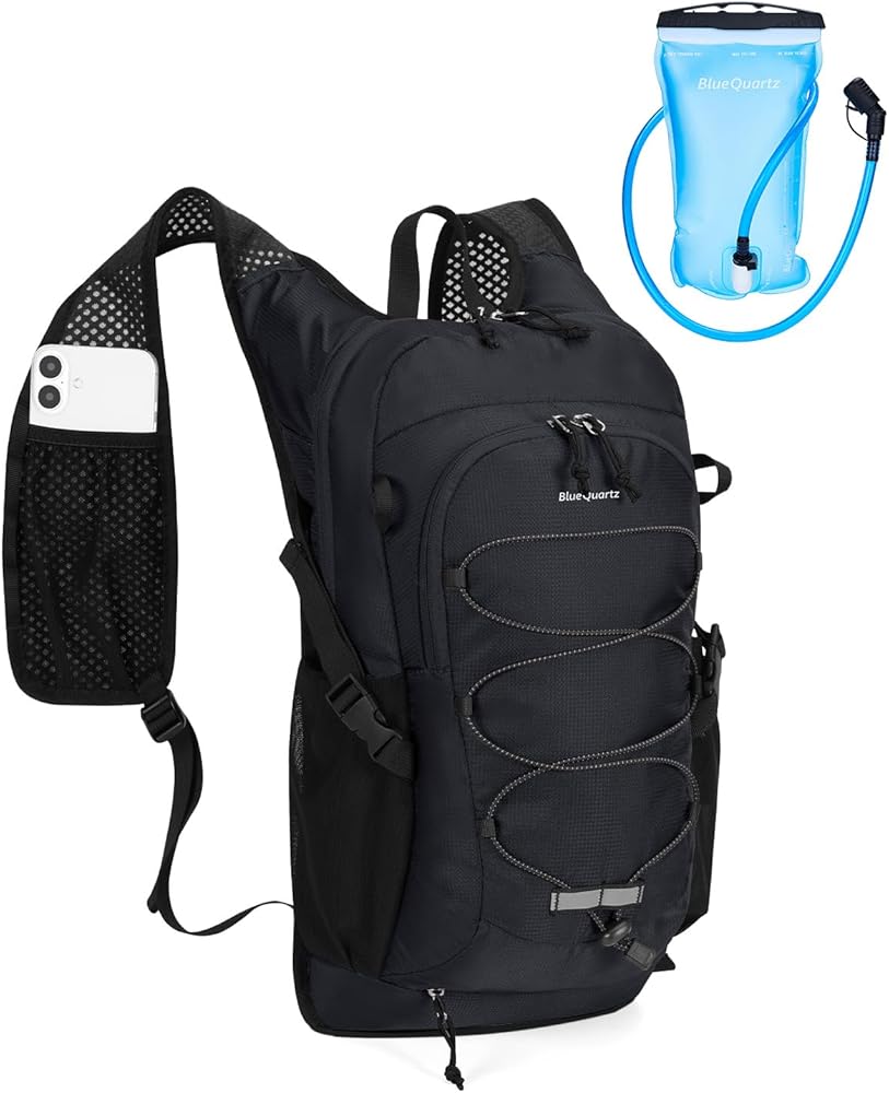 حقيبة ظهر مرطبة من الكوارتز الأزرق مع مثانة مياه سعة 2 لتر، حقيبة ظهر للمشي لمسافات طويلة سعة 18 لترًا للنساء والرجال، حزمة مياه خفيفة الوزن مع جيب للهاتف للوصول السريع، حزمة ترطيب لركوب الدراجات والجري وركوب الدراجات