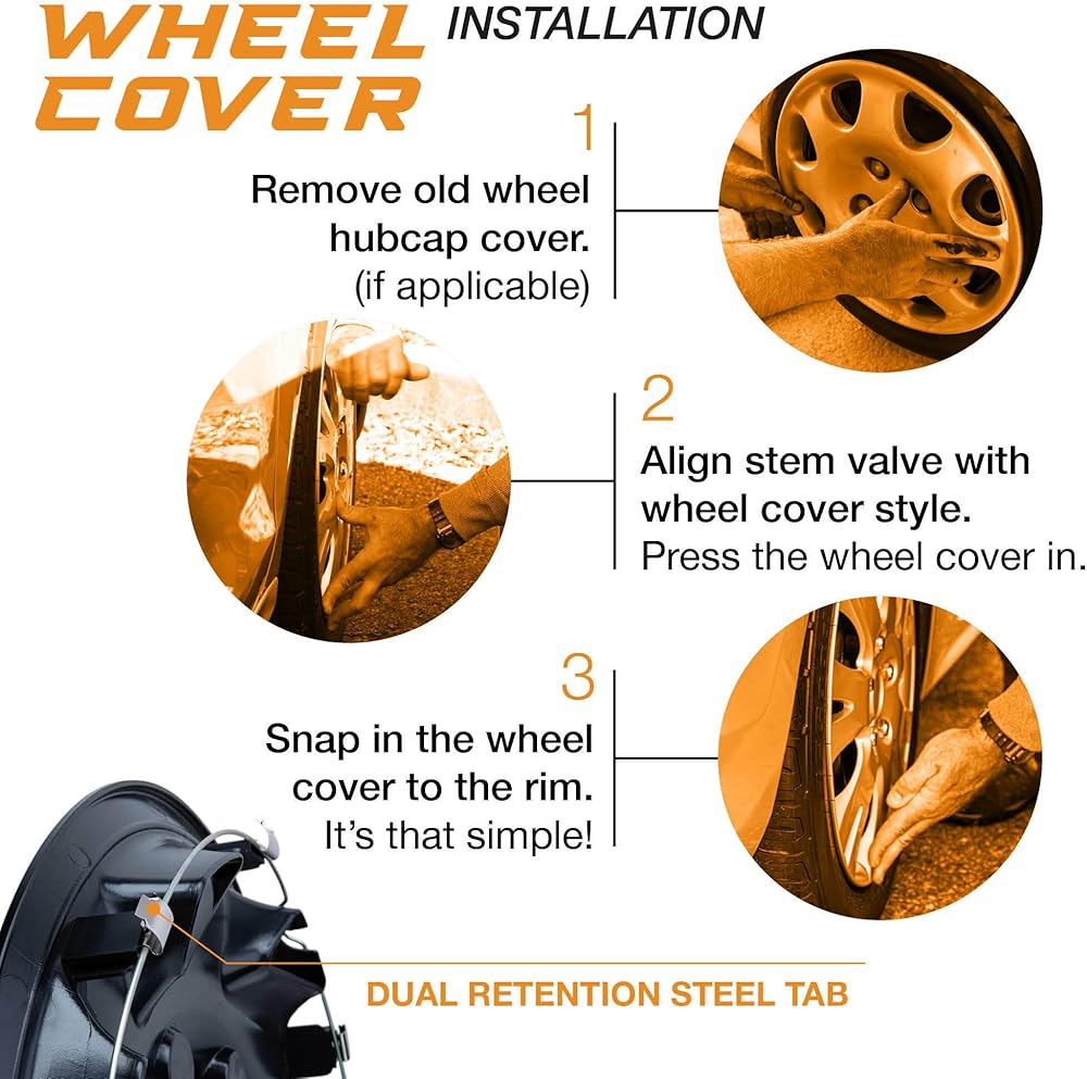 • يتم تركيبه في دقائق: تم تصميم أغطية العجلات هذه للتركيب السريع والسهل، ببساطة يتم تركيبها على العجلة الفولاذية OEM باستخدام عروات فولاذية مزدوجة الاحتفاظ X-TREME للحصول على ملاءمة محكمة.