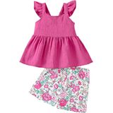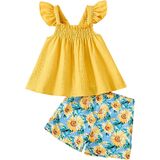 التصميم: تتميز مجموعة السراويل القصيرة المكونة من قطعتين للفتيات الصغيرات بجزء علوي من الزهور أو اللون الصلب مع ظهر مفتوح. تضيف تفاصيل الكشكشة على الأكمام حلاوة وسحرًا، بينما تضفي الصورة الظلية على شكل حرف A والحاشية المتدفقة الحركة والأناقة. مع شورت متناسق، التصميم الأنيق والملفت للنظر يجعل أميرتك الصغيرة مميزة في أي حشد من الناس