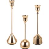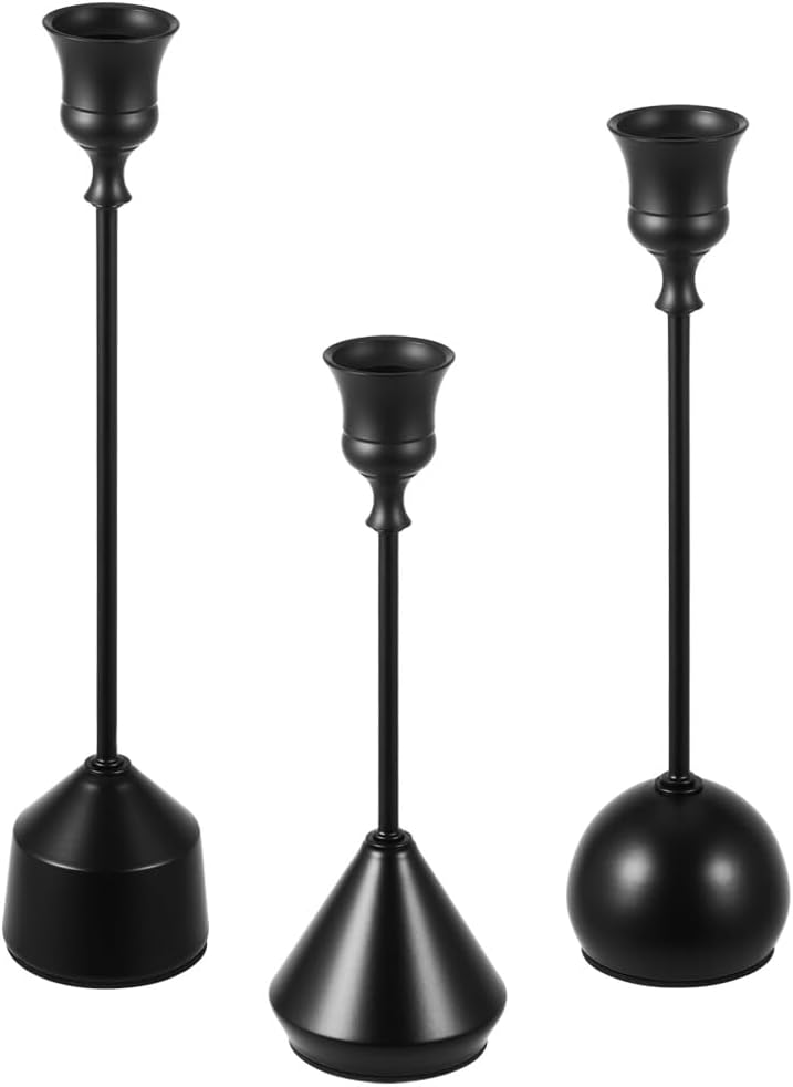 Exquisite Design: Available in 3 sizes with 3 uniquely elegant shaped bases, these candle holders provide vary in height candlelight easy to light the table and create a romantic atmosphere.