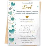 - Warm Modern Design – Features soft blue and gold tones with heart and star accents, suitable for dads of all ages
