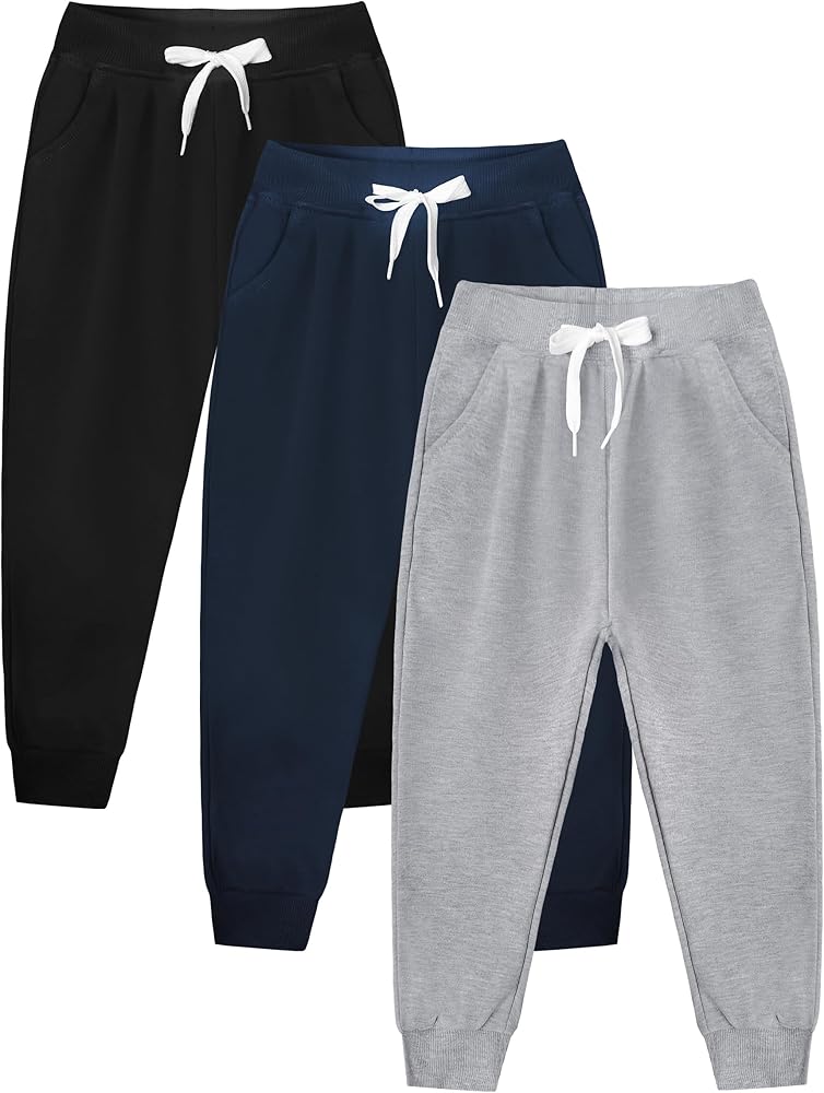 Discover the perfect blend of comfort, style, and durability with our 3-Pack Girls' Jogger Sweatpants! Designed for the non-stop energy of kids and toddlers, these pants are about to become the most reached-for item in your child's wardrobe. Say goodbye to morning outfit struggles! Our girls sweatpants are the ultimate solution for parents and kids alike. We understand that kids pants need to withstand play, provide comfort for learning, and look great all at once. That's why we created this value-packed set of three, available in a curated mix of popular colors. Whether she's heading to school, a playdate, or a family outing, she'll have a fresh, stylish pair ready to go. The secret to their appeal? Unbeatable comfort. We use a premium fabric blend of 70% cotton, 25% polyester, and 5% spandex. This combination creates girls sweat pants that are incredibly soft against the skin, breathable for all-day wear, and offer just the right amount of stretch for unrestricted movement. The flexible elastic waistband with an adjustable drawstring ensures a perfect, comfortable fit that won't dig or slide, whether she's sitting in class or climbing on the monkey bars. Thoughtful design meets everyday practicality. Featuring a classic joggers style with tapered cuffs and two side pockets, these girls joggers offer a modern, athletic look she'll love. The minimalist design makes them incredibly versatile—pair them with a graphic tee for weekend fun, a cozy sweater for a relaxed day, or a team jersey for game day support. They are the perfect girl pants for mixing and matching. Built for real life, these sweatpants girls adore are made to last. The durable fabric and quality stitching hold up through countless washes and endless activity. From school and sports practice to family travels and lazy Sundays, these pants for kids are the reliable choice for any adventure. Their moderate weight makes them a true all-season staple, easily layered for year-round wear. Simplify your life and delight your child with effortless style and comfort. Upgrade her casual wardrobe today with our best-selling Girls' Jogger Sweatpants 3-Pack!