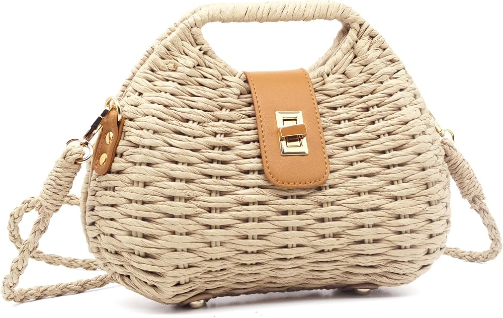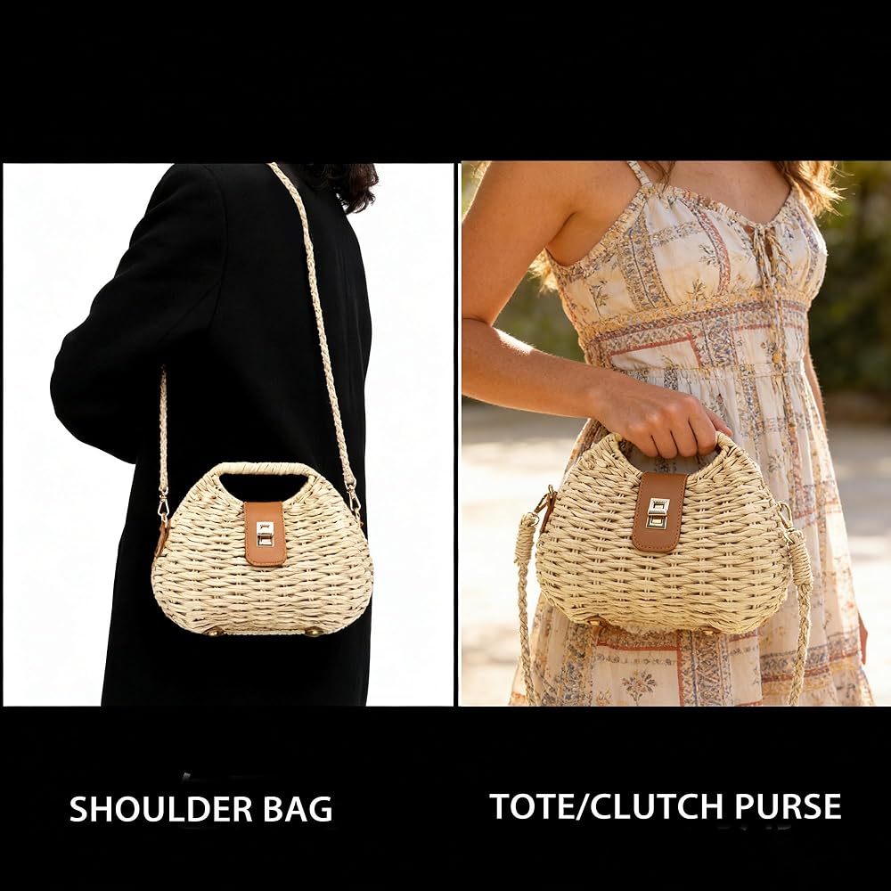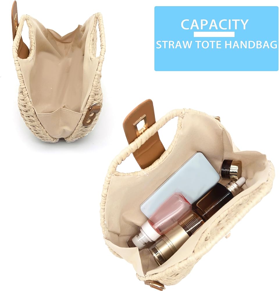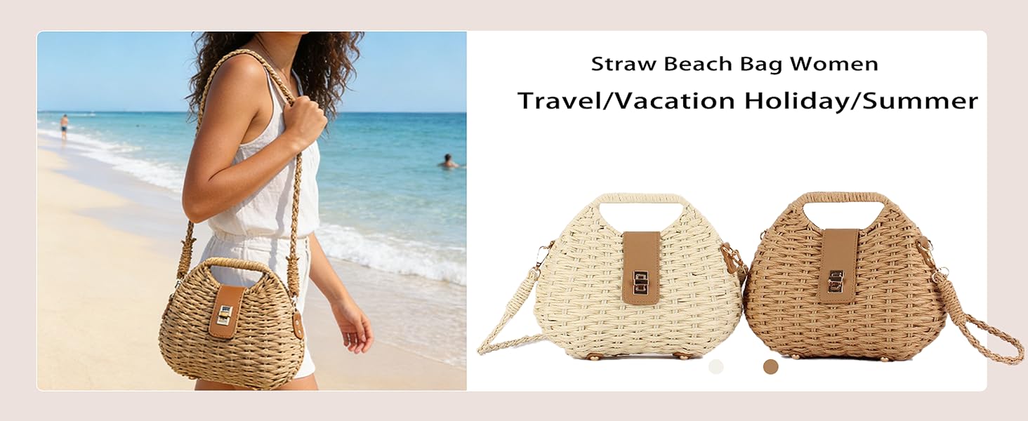 خفيفة الوزن وواسعة: مصنوعة من القش الطبيعي الفاخر ومادة الحبال الورقية، خفيفة الوزن للحمل (0.88 رطل فقط) مع توفير مساحة كافية للهاتف والمحفظة والنظارات الشمسية وغيرها من الضروريات الصغيرة.