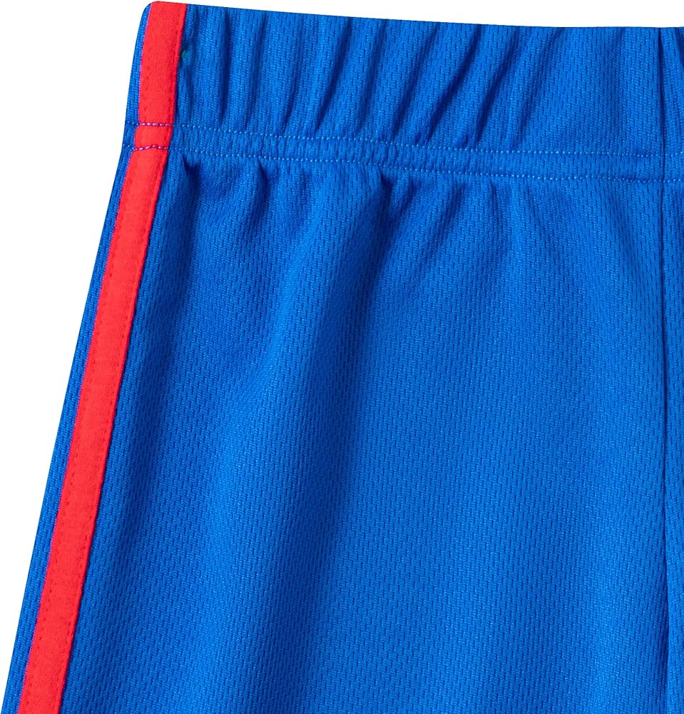 يحتوي على تي شيرت أحمر رائع مطبوع عليه Marvel Spiderman وسروال قصير مريح باللون الأزرق