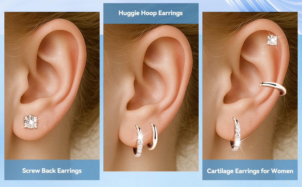 Cartilage earrings for women: Small hoop earrings and flatback stud earrings are both suit for cartilage piercing, helix piercing, first Lobe hole, second Lobe hole, third Lobe hole, tragus piercing, etc. You can freely dress and wear according to your preferences, Cubic zirconia earrings make you stand out in the crowd and add extra radiance