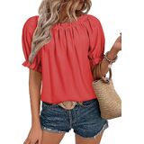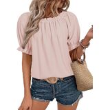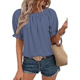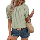 قميص نسائي صيفي كاجوال مكشكش بياقة دائرية وأكمام قصيرة وبلوزات فضفاضة بدون أكتاف in Kuwait
