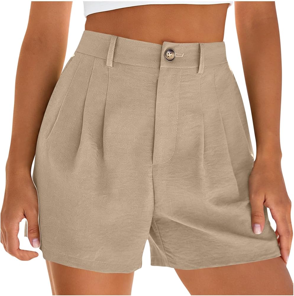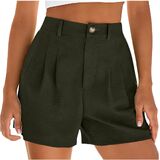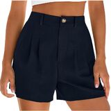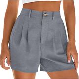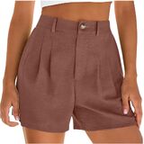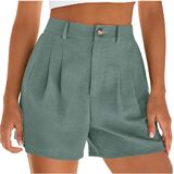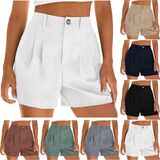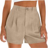 شورت كتان للنساء موضة صيف 2026 سروال شاطئ كاجوال بطيات وخصر عالي ومطاط مع جيوب in Kuwait