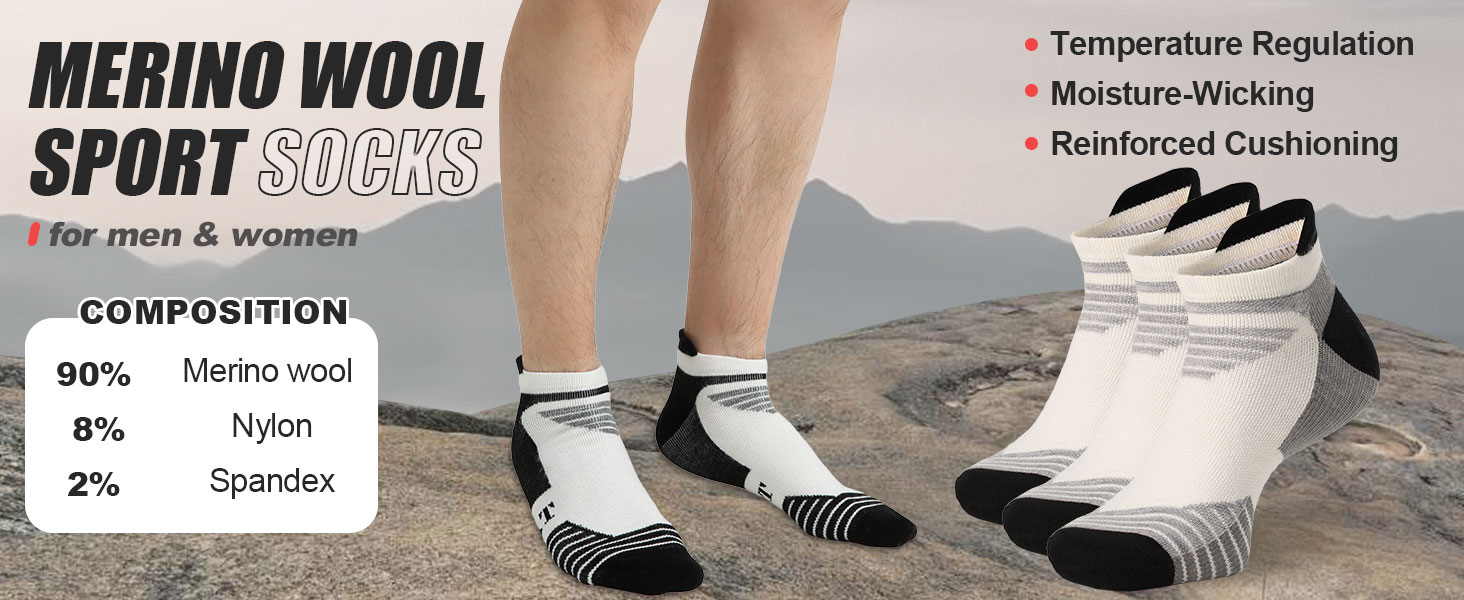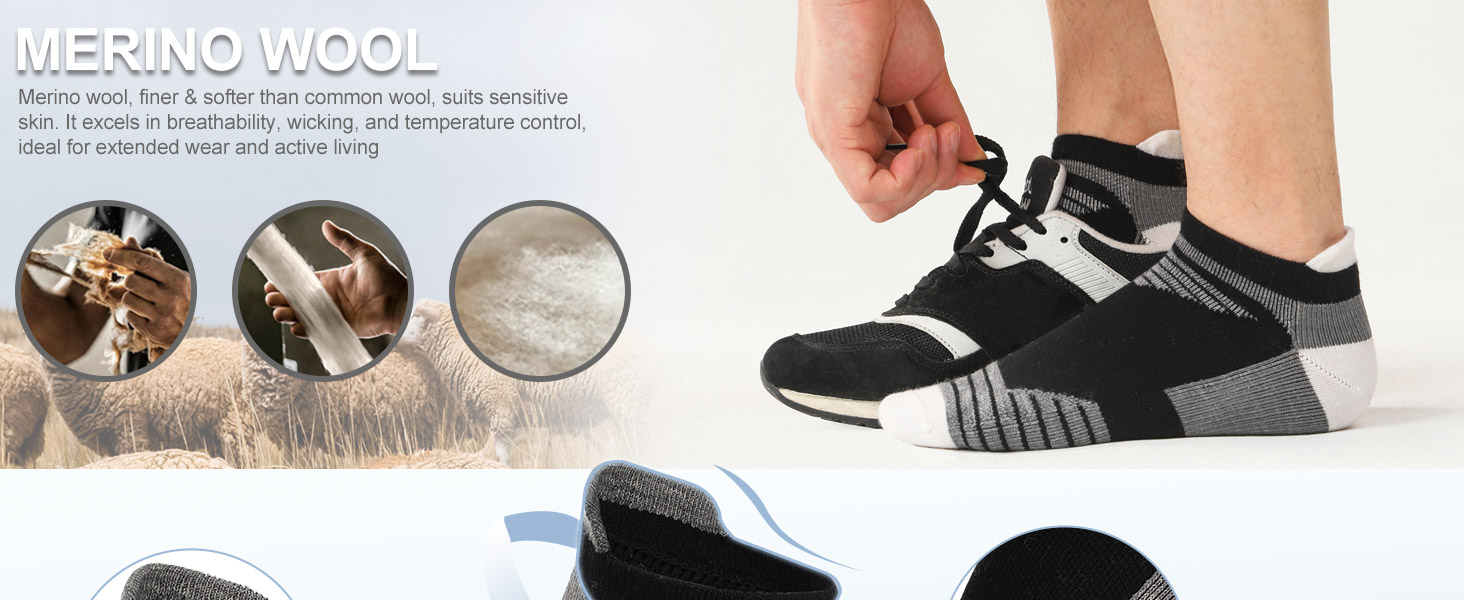 - جيد التهوية وخفيف الوزن: يضمن صوف ميرينو الفاخر تهوية جيدة للحفاظ على راحة القدمين طوال أيام العمل المزدحمة والاستخدام اليومي في جميع المواسم.
