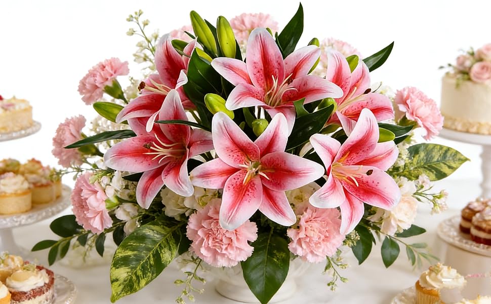 • متعددة المشاهد: زهور الزنبق الصناعية ذات السيقان طبيعية وواقعية وممتلئة وجميلة، وهي مناسبة لأي موسم أو مناسبة. مثالية لديكور حفلات الزفاف، والحفلات، وحفلات استقبال الأطفال، والمطابخ، وغرف الطعام، والطاولات، والغرف، والمزهريات اليومية، والمكاتب، وحديقة بيوت المزرعة، والديكور المنزلي الداخلي أو أي ديكور زهور آخر. كما أنه يمثل هدية رائعة لشخص لديه حساسية من حبوب اللقاح