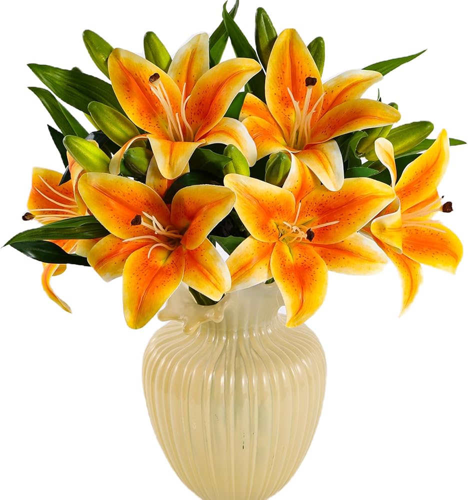 • مجموعة كاملة من زهور زنبق النمر ذات اللمسة الواقعية: تتضمن العبوة 6 سيقان زنبق النمر الاصطناعية (طول كل منها 38.1 سم) مع بتلات نابضة بالحياة وملمس مخملي. يتميز كل جذع بزهرة واحدة مزهرة + برعمتين بمظهر طبيعي للأناقة ذات الأبعاد